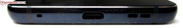 Der OTG-fähige USB-C-Port unterstützt offiziell USB-3.1-Tempo, erreichte im Test aber bei Weitem nicht diese Geschwindigkeit. Beim Kopieren von Dateien zwischen PC und Smartphone waren mit dem beiliegenden USB-Kabel bestenfalls 42 MByte/s drin, also nur ein etwas besseres USB 2.0. Ein 3,5-mm-Klinkenanschluss fehlt dem Nokia 9 PureView. Nachrüsten lässt er sich aber über den beiliegenden USB-C-Adapter.
