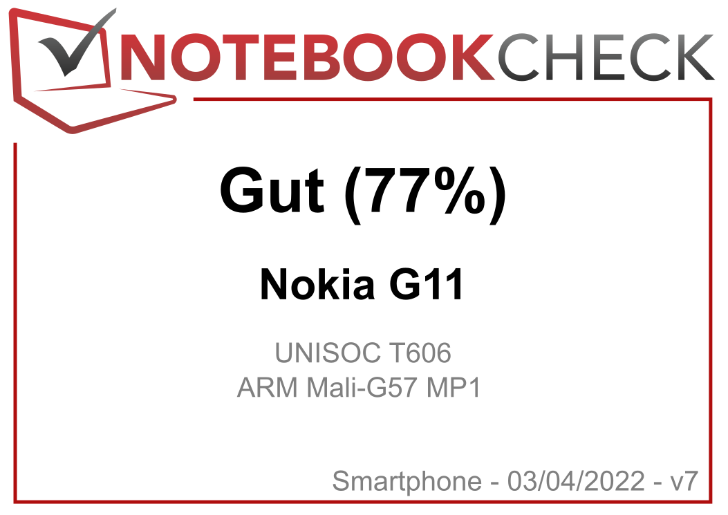 | 77 % v7 (old) | 04 / 2022 | Nokia G11 T7200 (T606), Mali-G57 MP1 | 190 g | 32 GB eMMC Flash | 6.50" | 1600x720 | |