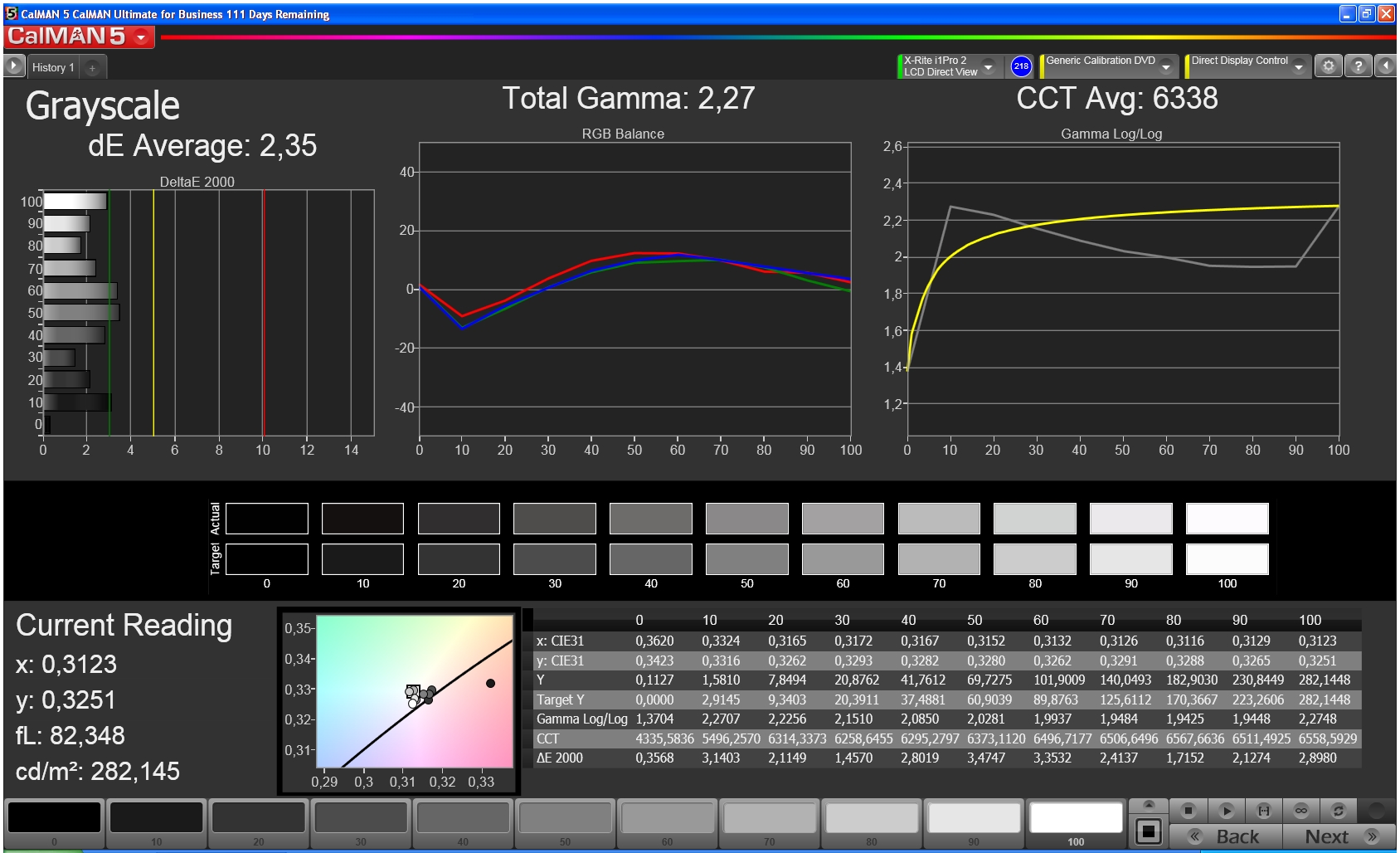 ΔE Greyscale Calman: 2.35 | ∀{0.09-98 Ø5}