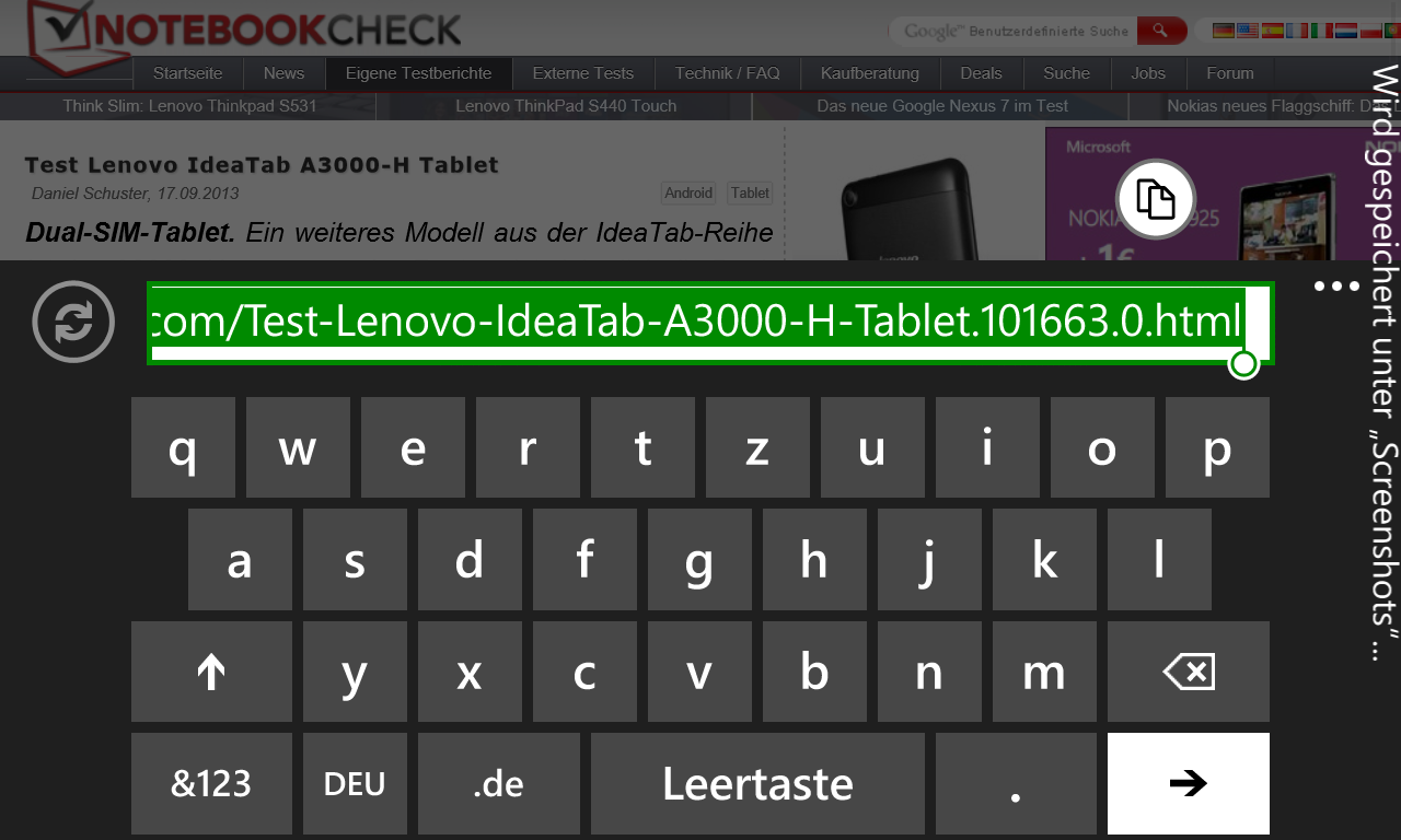 Der kapazitive Screen reagiert präzise und zügig auf die getätigten Eingaben. Subjektiv gestaltet sich die Navigation durch die Windows-Phone-Welt als angenehm schnell und intuitiv. Die farbenprächtige Metro-Oberfläche ist unlängst bekannt und stellt auch für Neueinsteiger keine Hürde dar. Zum Schreiben wird die virtuelle Tastatur verwendet. Diese nimmt im Landscape-Modus immerhin ca. 70 % der gesamten Displayoberfläche ein. Dreht man das Smartphone um 90 °, belegt die Tastatur deutlich weniger Platz auf dem Bildschirm.