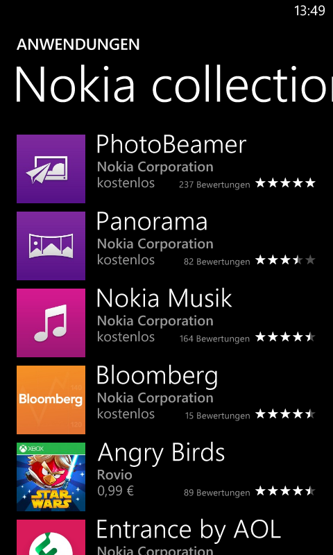 Nokia installiert auf dem Lumia 620 zahlreiche hauseigene Anwendungen, die allesamt gut gelungen sind und im Test reibungslos funktionieren. Dazu gehören unter anderem der zuverlässige Routenplaner Nokia Drive+ Beta, die Landkarten-Software Nokia Karten, des Weiteren Nokia Bus & Bahn sowie die ausführliche Hilfe-Software Nokia Care. Mit an Bord ist außerdem die mobile Version von Microsoft Office, mit der sich Dokumente aus Excel, Word, PowerPoint und OneNote erstellen, öffnen und bearbeiten lassen.