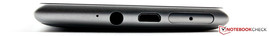 Die obligatorische 3,5-mm-Klinke dient dem Smartphone als kombinierter Audio-Ausgang und Mikrofon-Eingang. Bluetooth ist in Version 3.0 vorhanden, außerdem gibt es auch einen NFC-Chip. Die Möglichkeit das Smartphone kabellos aufzuladen, ist über ein optionales Cover möglich.