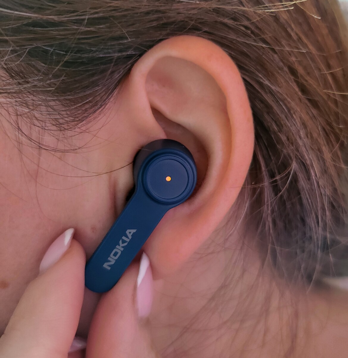 Die Auswahl der Nokia-TWS beschränkt sich auf zwei Farboptionen. Das Design unserer blauen Test-Samples zeichnet sich durch eine ansprechende Farbgebung mit einem matten Finish aus, sodass Fingerabdrücke nicht zum Problem werden.