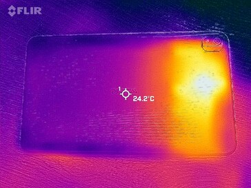 Mit maximal 36,4 °C ist die Erwärmung am Gehäuse unter langer Last durchschnittlich und zudem lokal stark begrenzt. Das SoC zeigt auch bei längerer Belastung allenfalls sehr geringe Leistungsverluste, wie der 3DMark-Stresstest beweist.