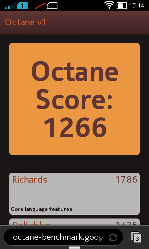 Die Browser-Performance des Nokia X ist nicht sonderlich hoch, eignet sich aber zum Surfen im Web. Der vorinstallierte Stock-Browser basiert auf Google Chrome 30 und ruft die Webseiten recht flott auf. Jedoch stellt sich die lahme Systemleistung oftmals als hinderlich heraus. Die meisten Benchmarks stürzten ab. Sowohl Peacekeeper als auch Browsermark 2.1, Mozilla Kraken, Octane 2.0 und WebXPRT liefen nicht durch. Die wenigen ermittelten Werte zeigen eine mäßige Java-Performance. In den Google-Benchmarks schneidet das Nokia X jedoch relativ ordentlich ab.