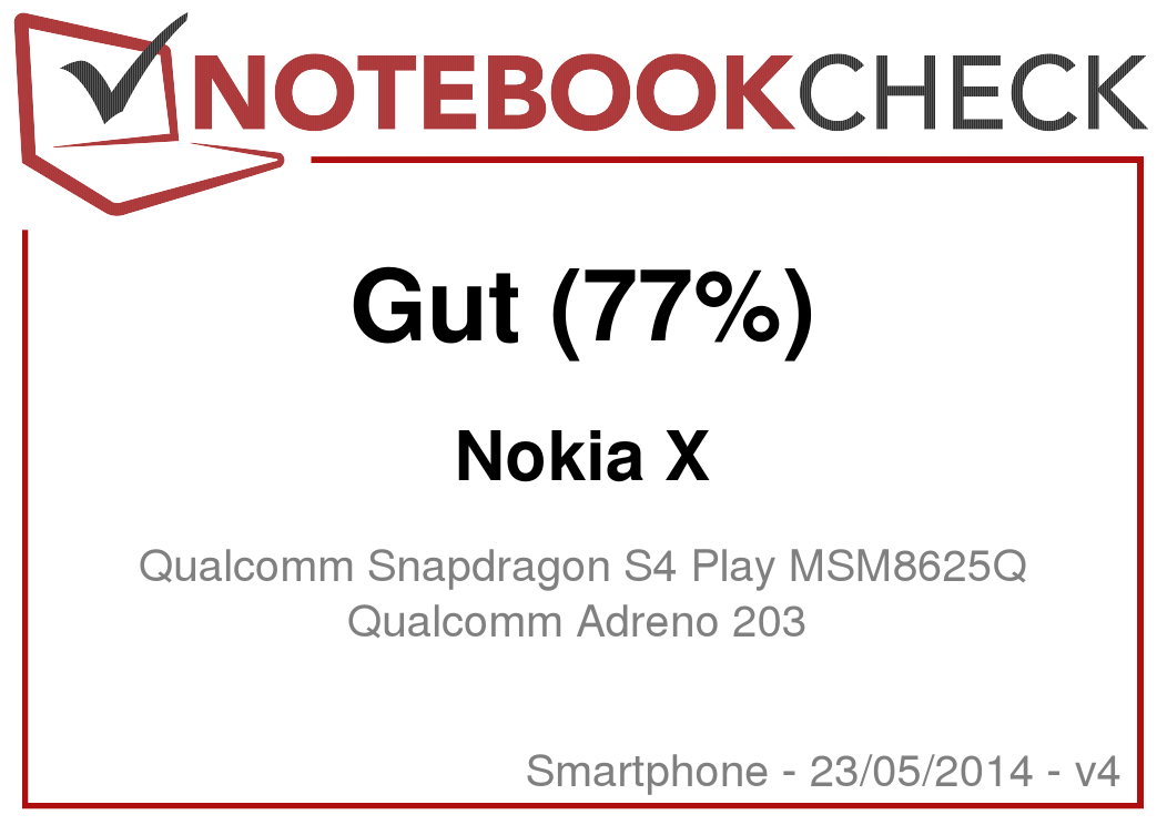 Das Nokia X glänzt durch eine gute Verarbeitung und ein helles und sehr ausgewogen illuminiertes Display. Die größten Mankos sind sicherlich die niedrige Performance und die geringe App-Auswahl. Warum der Hersteller auf eine Anbindung an Googles Play Store verzichtet, ist aus Sicht des Kunden nicht nachvollziehbar. Denn damit wird vor allem Einsteigern, an die sich das Gerät richtet, der Zugang zu manchen Apps erschwert beziehungsweise erst gar nicht ermöglicht. Einem Smartphone-Neuling zuzumuten APKs manuell zu installieren, um beispielsweise an gängige Apps, wie WhatsApp oder Instagram, zu gelangen, ist nicht zielgruppenfreundlich. Außerdem wirkt die hauseigene Nokia X Software Platform etwas träge und es kommt immer wieder zu kleineren Rucklern. Hinzu gesellen sich Abstürze von aufwendigen Anwendungen, wie Benchmarks. Weshalb wir eine Abwertung (-4) über die Eindrucksnote vornehmen würden. Doch die vollwertige Offline-Navigation und der kostenlose Musik-Streaming-Dienst Nokia MixRadio (+2) federn dies etwas ab, sodass die Abwertung ein wenig milder ausfällt.