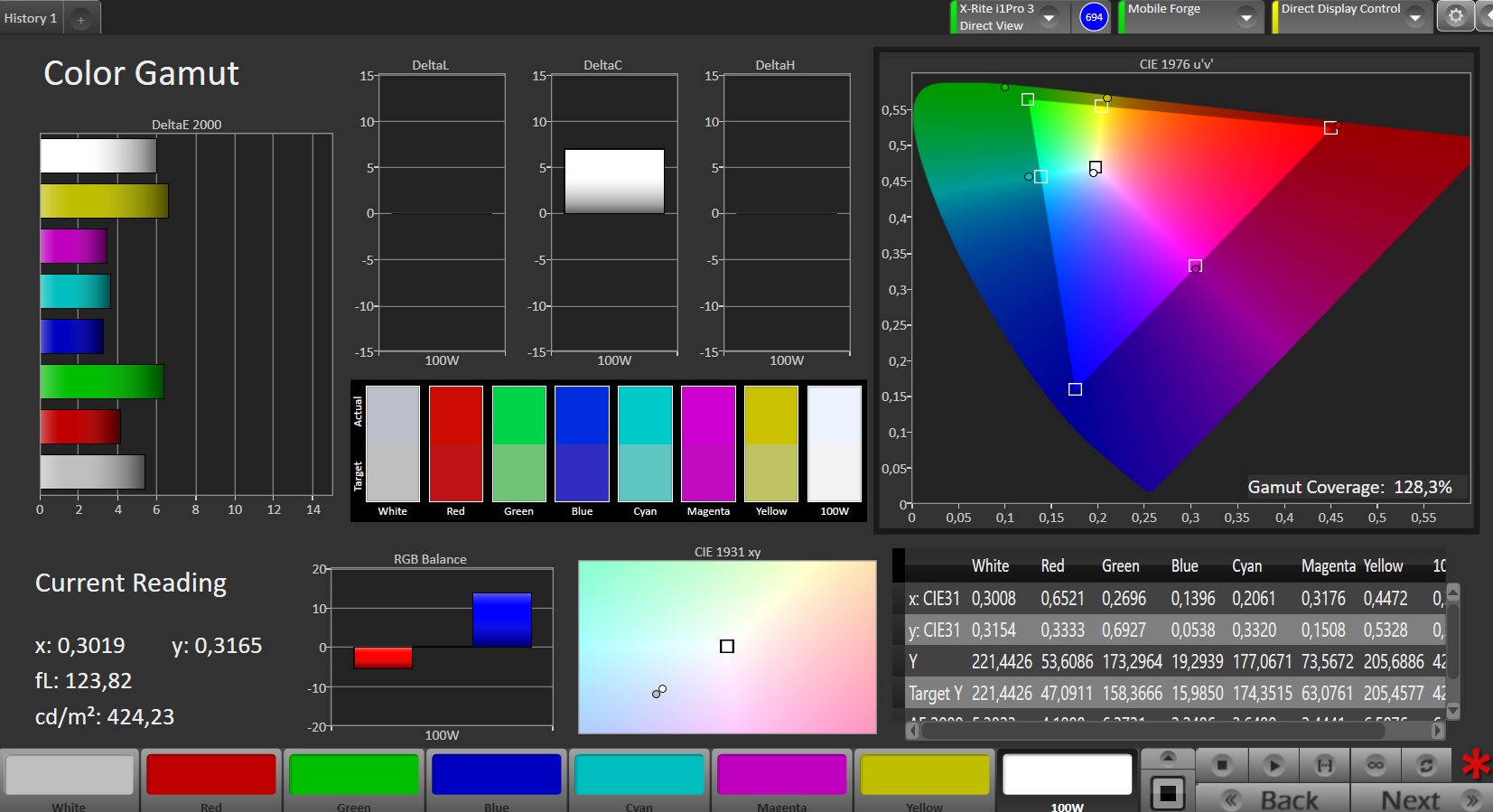 | Delta E Graustufen * | 4.2 | 7.9 -88% | 5.5 -31% | 8.5 -102% | 6.2 -48% |