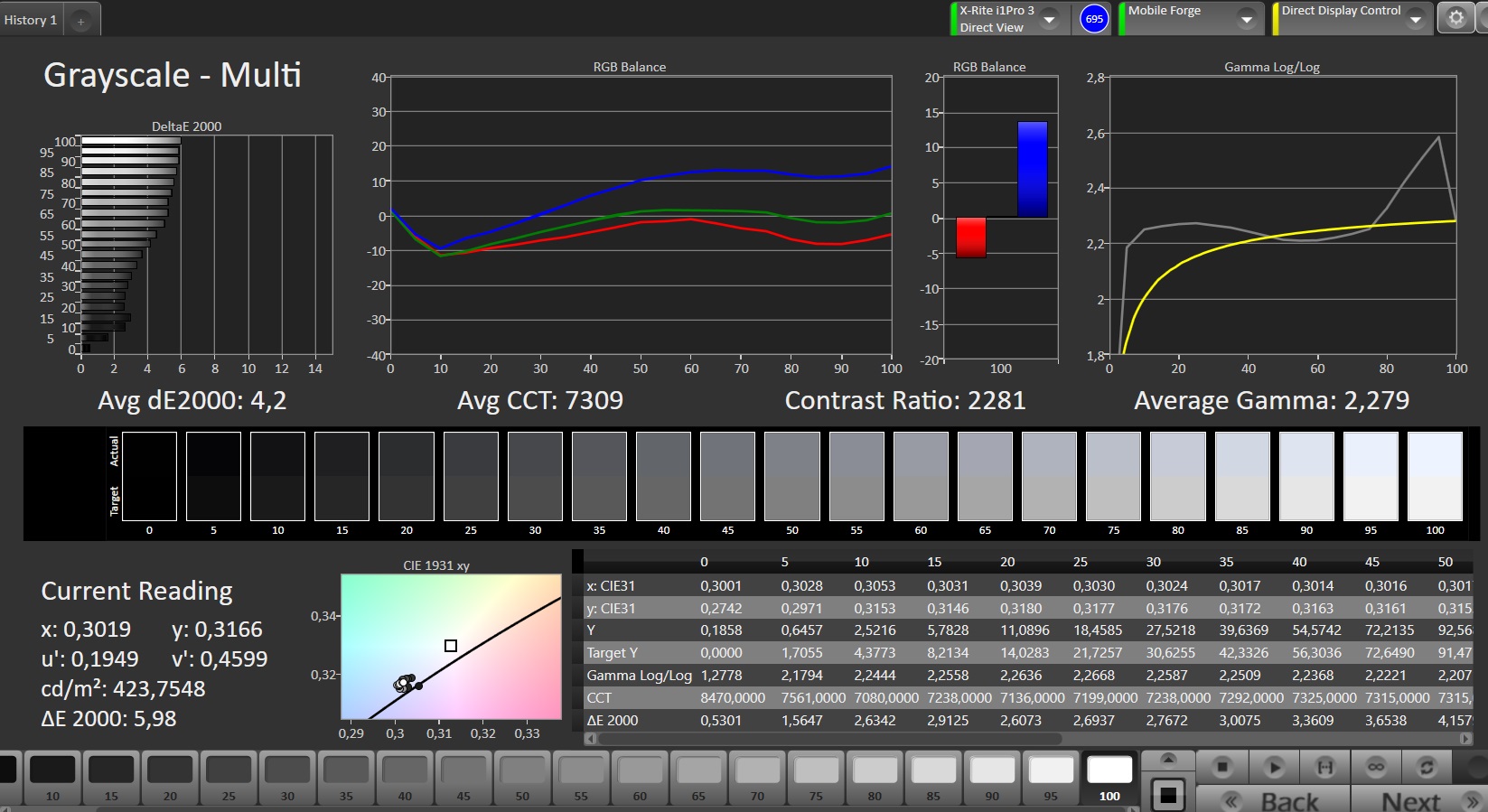 ΔE Greyscale Calman: 4.2 | ∀{0.09-98 Ø5}