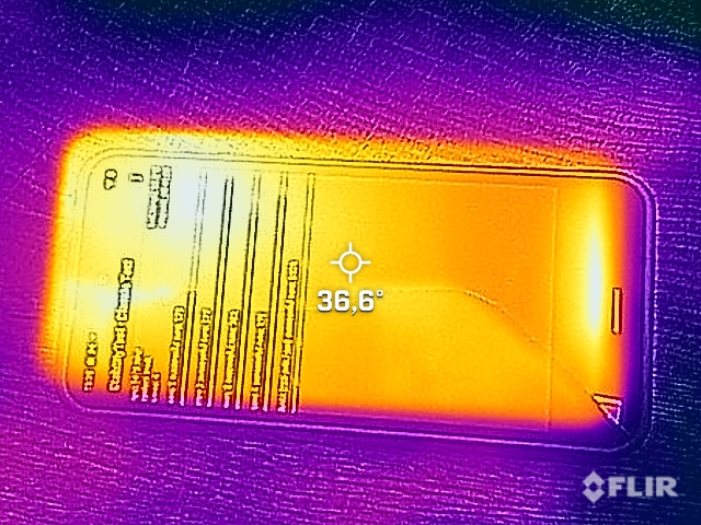 (±) Auf der Unterseite messen wir eine maximalen Wert von 41.3 °C (im Vergleich zum Durchschnitt von 34 °C).