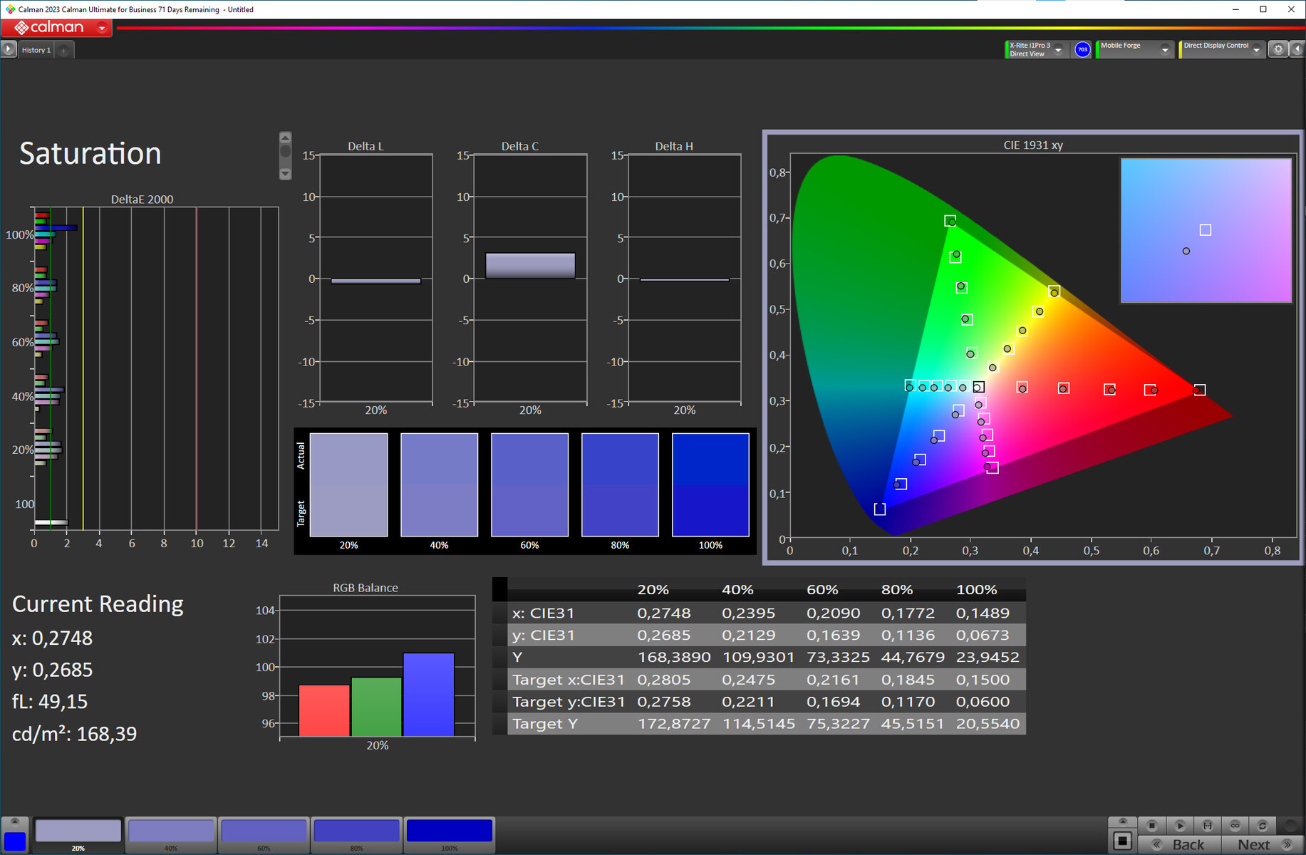 | Delta E Colorchecker * | 1.3 | 2.9 -123% | 1.3 -0% | 1.2 8% |