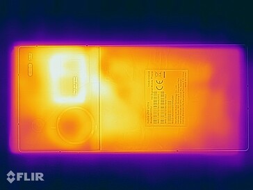 (-) Auf der Unterseite messen wir eine maximalen Wert von 55.6 °C (im Vergleich zum Durchschnitt von 34 °C).