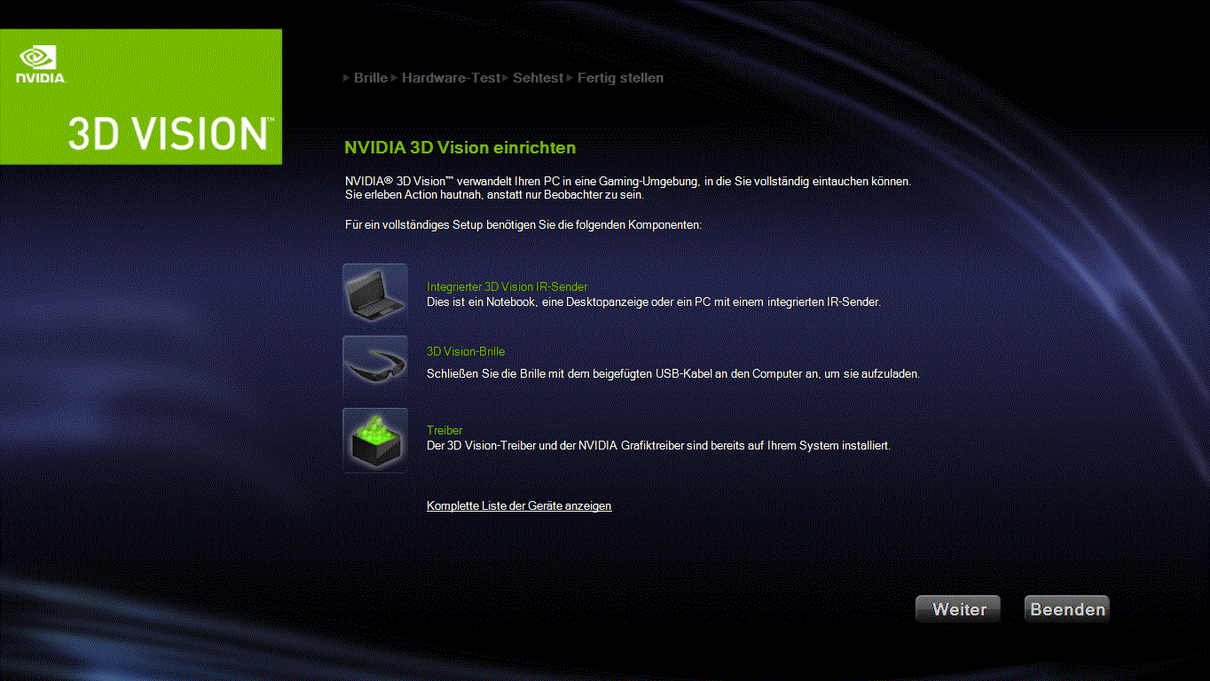 Schon im Jahr 2008 hat Nvidia das sogenannte „3D Vision Kit“ vorgestellt, das sich der angesprochenen Shutter-Technik bedient und derzeit für rund 130 Euro zu haben ist. In diesem Paket sind unter anderem eine aktive Shutter-Brille sowie ein IR-Sender, der für die Synchronisierung der Signale zwischen Monitor und Brille zuständig ist, enthalten (Reichweite jeweils 4.5 Meter). Ist 3D Vision aktiv, werden die beiden Brillengläser, parallel zu den Halbbildern auf dem Display, bis zu 60 mal pro Sekunde abgedunkelt.