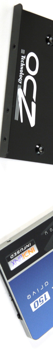 Das solide Metallgehäuse ist sehr gut verarbeitet und könnte durch ein Lösen der 4 Kreuzschrauben auch einfach geöffnet werden. Mit dem Bruch des Siegels wird man allerdings einen Garantieverlust einkalkulieren müssen. Das 7 mm hohe 2,5-Zoll-Laufwerk eignet sich sowohl für den Betrieb in den meisten Notebooks als auch für einen Einsatz im Desktop-Rechner. Für letzteren Fall legt OCZ gleich einen 3,5-Zoll-Einbaurahmen inklusive 8 Schrauben bei. Das Gewicht erreicht mit 115 Gramm etwa das Niveau konventioneller Festplatten und sorgt im Notebookeinsatz für keine zusätzliche Gewichtsersparnis.