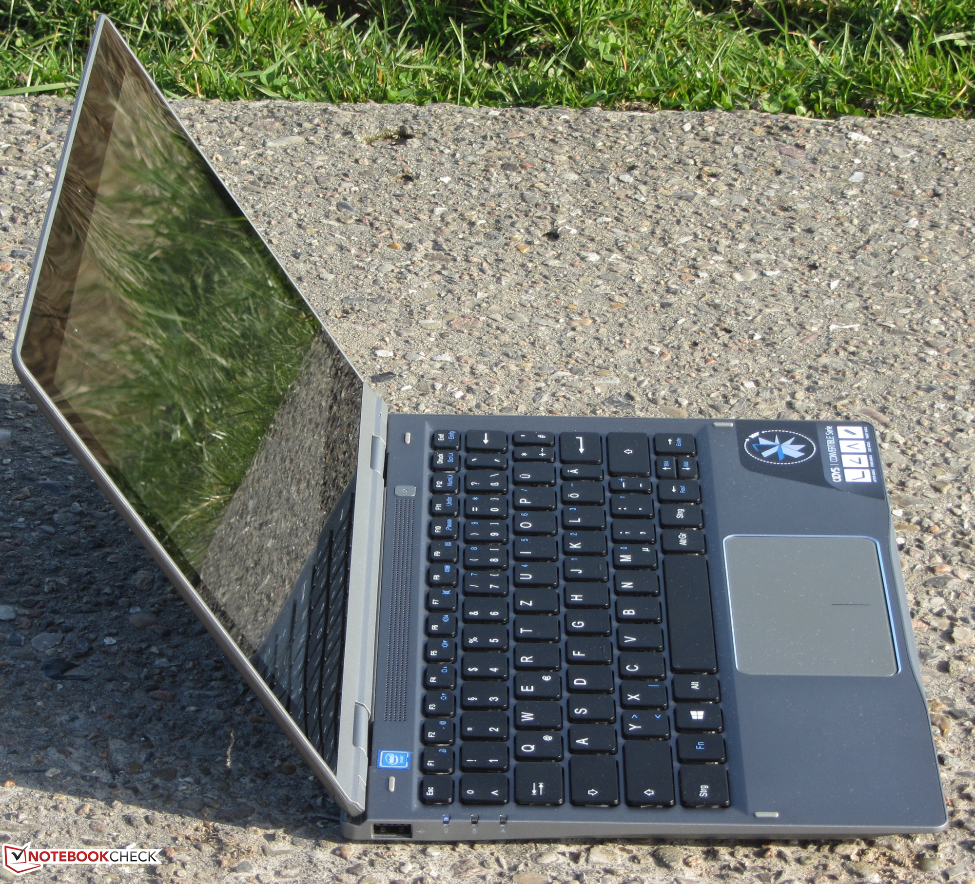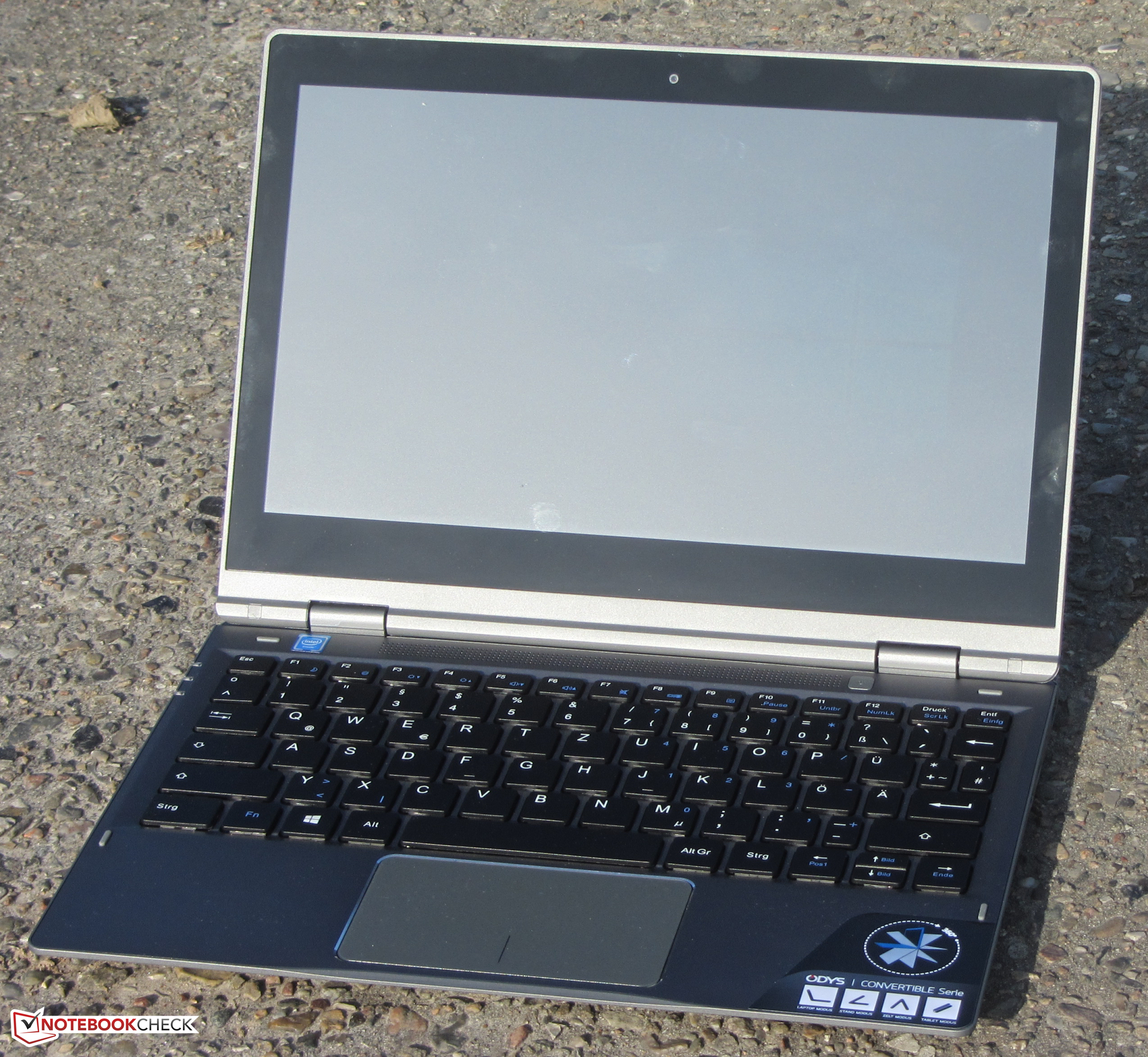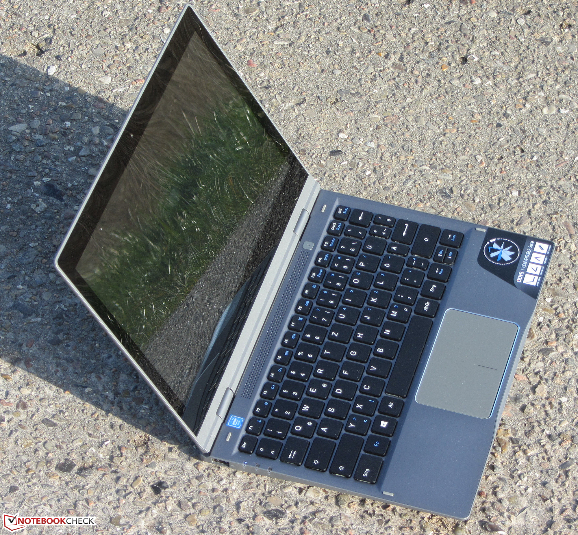 Odys stattet das Vario Pro mit einem blickwinkelstabilen IPS-Panel aus. Somit ist der Bildschirm aus jeder Position heraus ablesbar. Im Freien kann das Convertible nicht genutzt werden. Die geringe Displayhelligkeit und die reflektierende Bildschirmoberfläche verhindern es.
