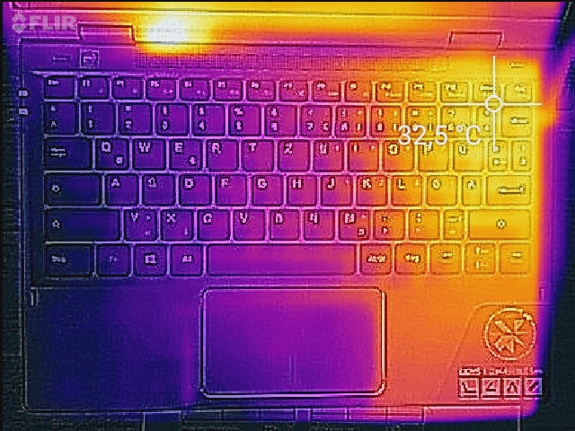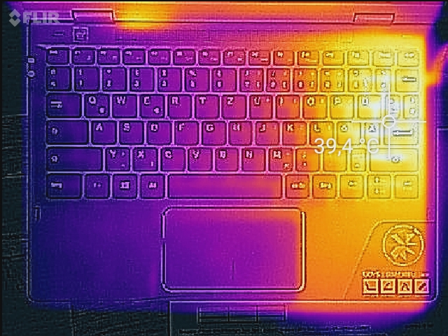 (+) Die Handballen und der Touchpad-Bereich sind mit gemessenen 30.3 °C kühler als die typische Hauttemperatur und fühlen sich dadurch kühl an.