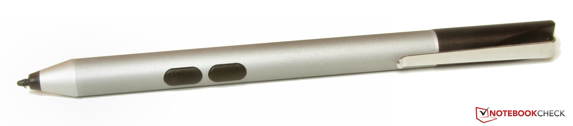 Odys legt dem Convertible einen aus Metall gefertigten aktiven Eingabestift bei. Die Energieversorgung übernimmt eine AAAA-Batterie (im Lieferumfang enthalten). Zudem wird eine Stifthalterung mitgeliefert, die in den USB-2.0-Steckplatz gesteckt wird. Im Handbuch des Rechners wird ausdrücklich betont, dass die USB-2.0-Schnittstelle und nicht die USB-3.1-Gen-1-Schnittstelle benutzt werden soll.