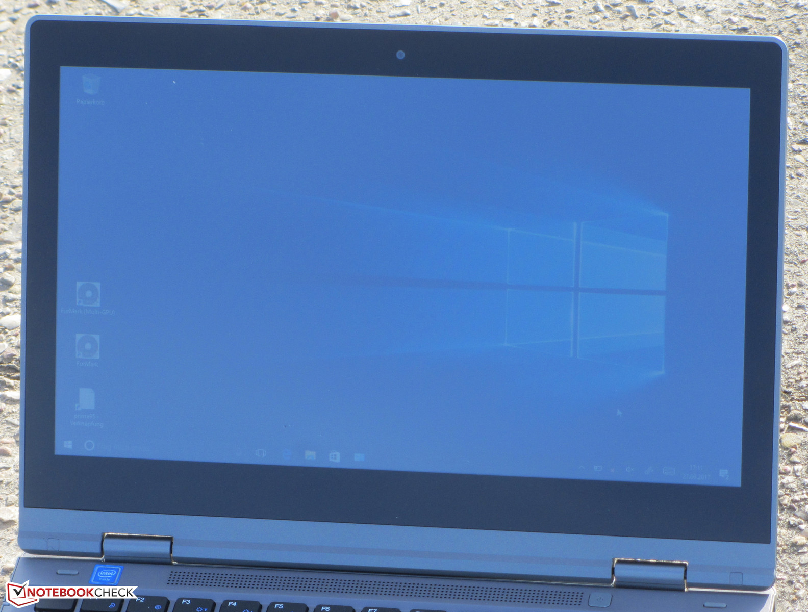 Das 11,6-Zoll-Touchscreen-Display des Vario Pro arbeitet mit einer nativen Auflösung von 1.366 x 768 Bildpunkten. Der Helligkeitswert (249,6 cd/m2) des Bildschirms fällt zu niedrig aus. Schließlich handelt es sich hier um ein Convertible, das an unterschiedlichen Standorten und somit unter verschiedensten Lichtverhältnissen eingesetzt werden wird. Der Kontrast (762:1) geht in Ordnung. Positiv: Das Display zeigt zu keiner Zeit PWM-Flimmern.