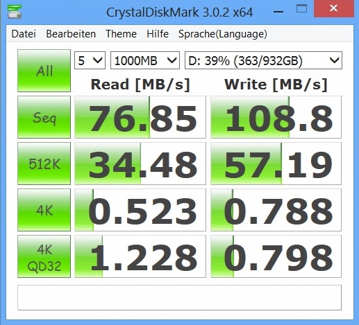 Begleitet wurde die mSATA-SSD von einer sogenannten Hybrid-Festplatte. SSH(D)s setzen auf eine Kombination aus Magnetspeicher und Flash-Speicher. Obwohl die Leistung nicht an vollwertige Solid State Drives heranreicht, macht die 1.000 GByte große Seagate ST1000LM014-1EJ164 eine prima Figur. Im Vergleich zu klassischen HDDs fühlen sich Hybrid-Modelle teils deutlich schneller an. Dass die Festplatte nur mit 5.400 U/Min arbeitet, merkt man in der Praxis nicht; die subjektive Performance gleicht einer starken 7.200er-HDD.