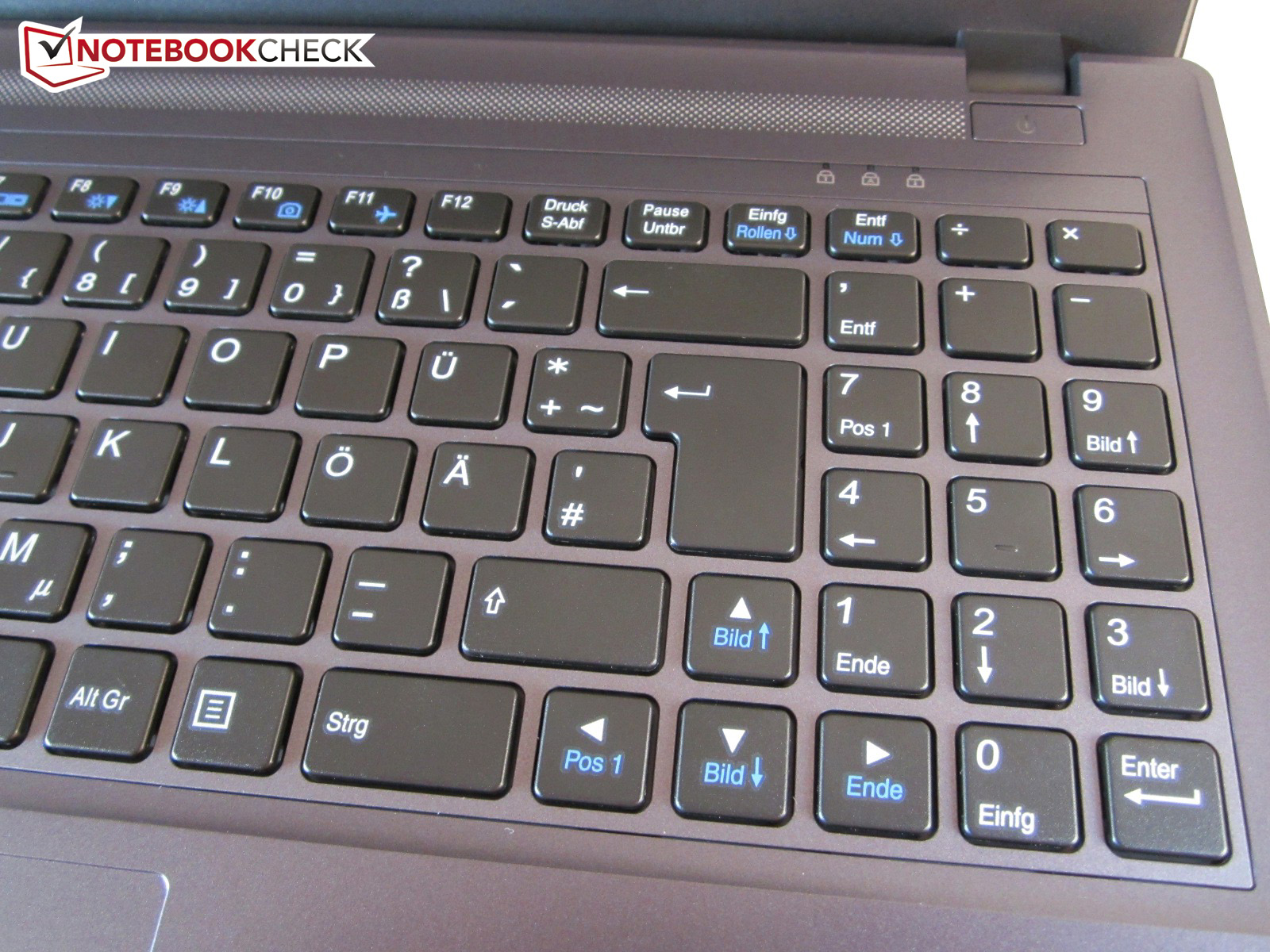 Etwas enttäuscht waren wir von der Tatsache, dass Clevo nicht auf die beleuchtete Tastatur der 15-Zoll-Kollegen P150SM respektive P157SM zurückgreift, sondern auf das alte Chiclet-Modell vertraut, das ohne eine praktische Beleuchtung vorliebnehmen muss.