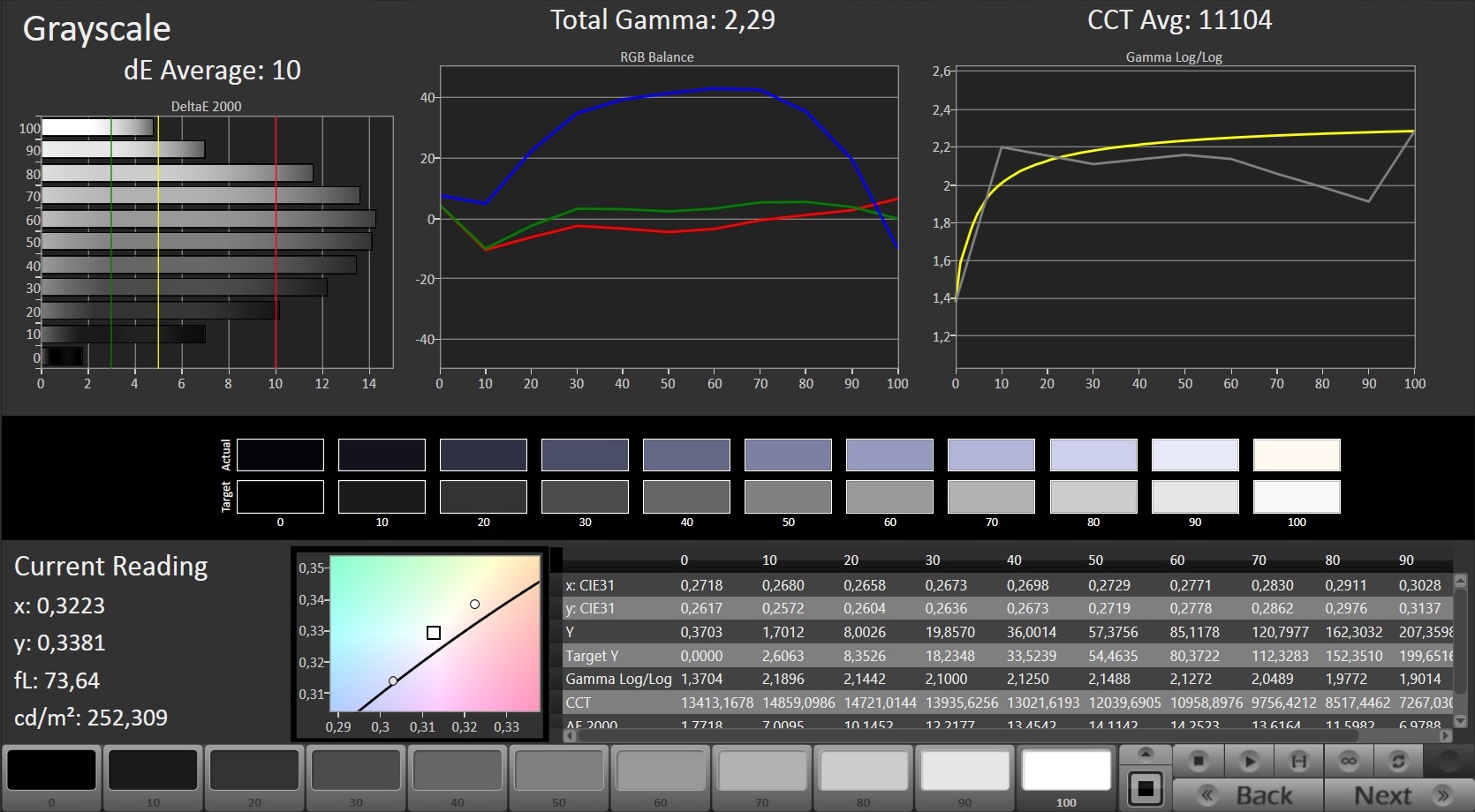 ΔE Greyscale Calman: 10 | ∀{0.09-98 Ø5}