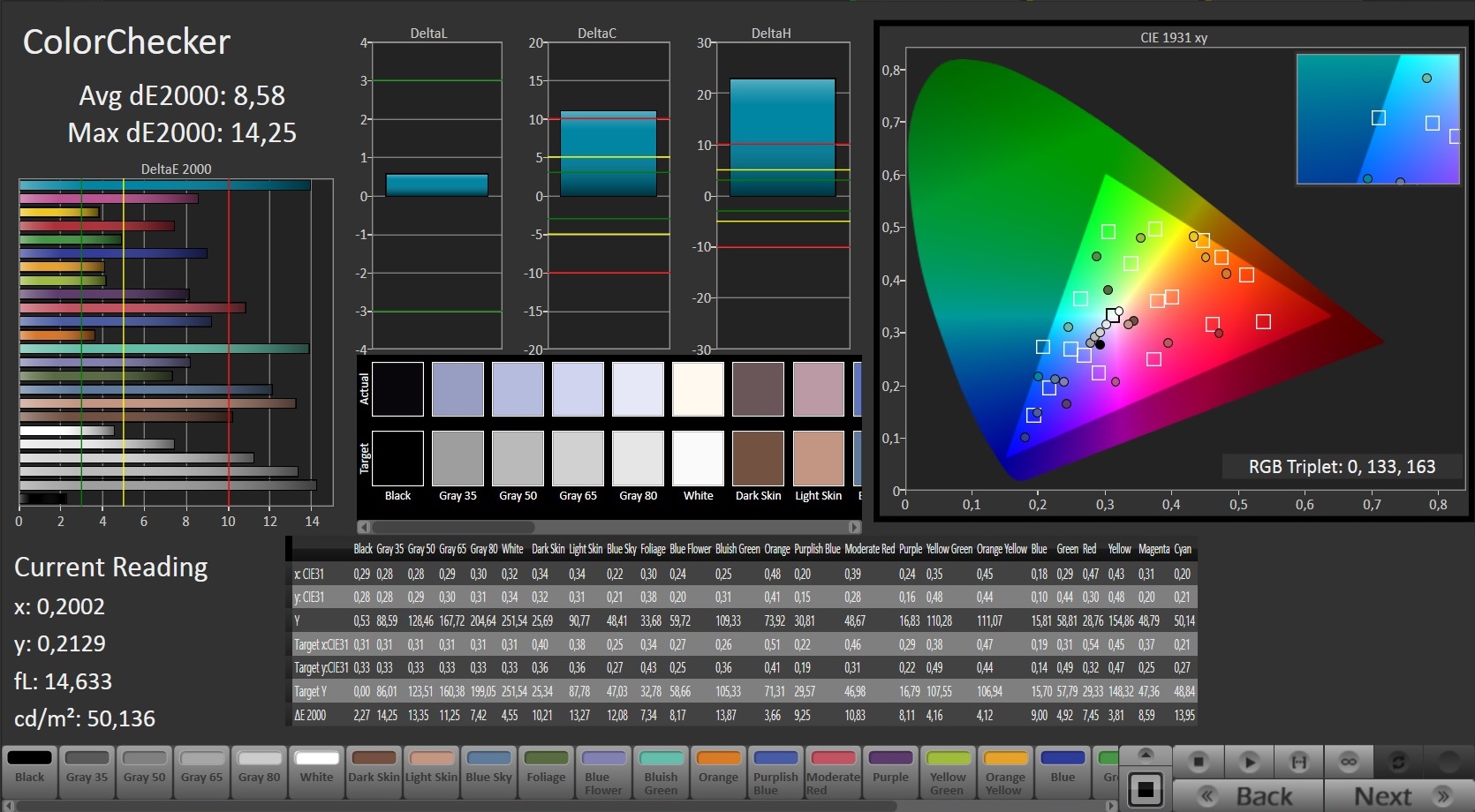 ΔE ColorChecker Calman: 8.58 | ∀{0.5-29.43 Ø4.78}