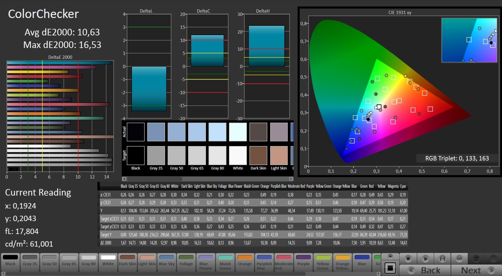 ΔE ColorChecker Calman: 10.63 | ∀{0.5-29.43 Ø4.79}