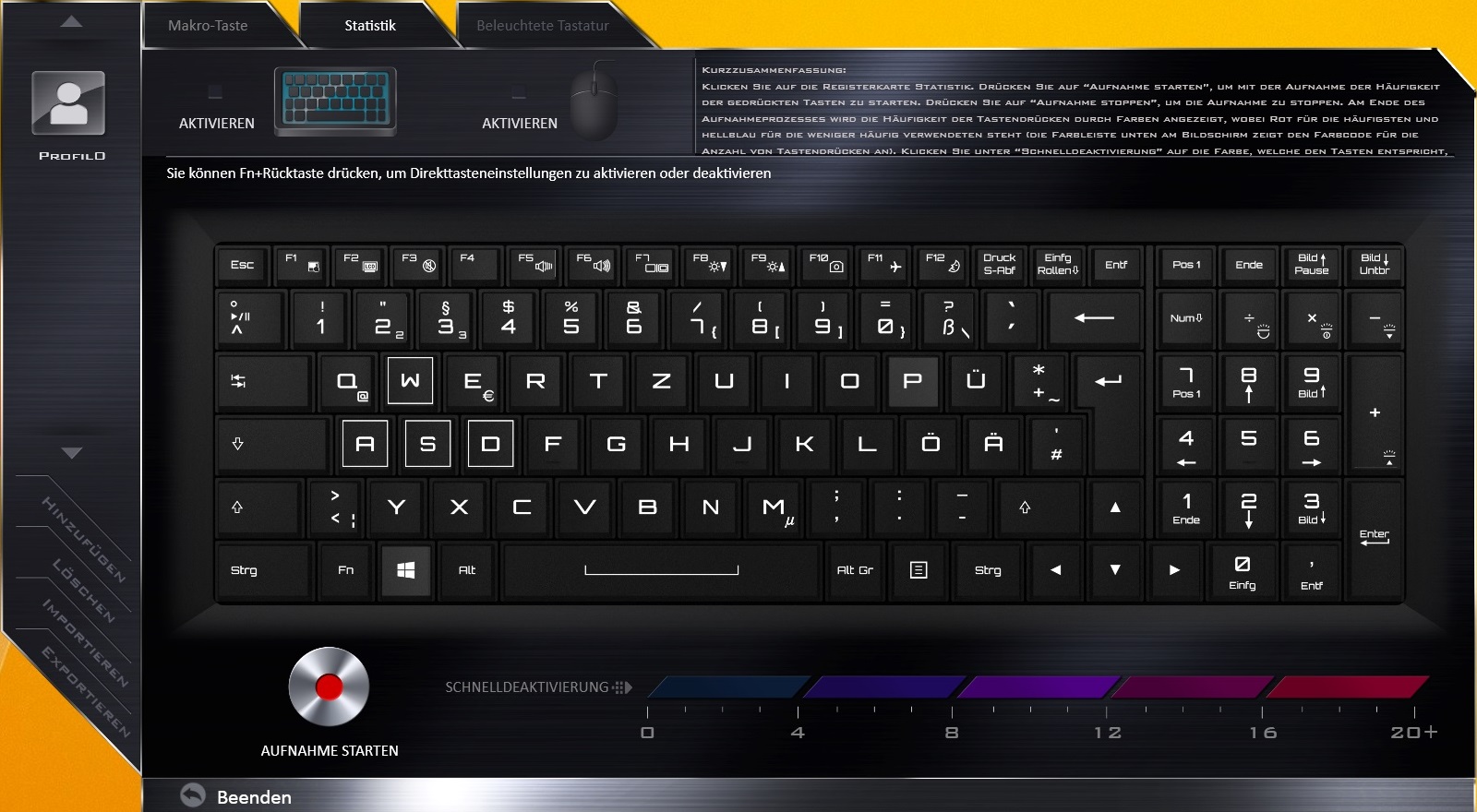 Besonders gut hat uns das Layout gefallen. Zwar ragen die Richtungspfeile in den Nummernblock hinein, das zweizeilige Enter und die normal positionierte Windows und <>| Taste erleichtern jedoch die Eingewöhnung. Bei MSI sind die entsprechenden Tasten in der Höhe reduziert oder gleich komplett verschoben (siehe z. B. das GT72). Dank der zahlreichen Pluspunkte dürften auch Vielschreiber mit dem Keyboard glücklich werden.