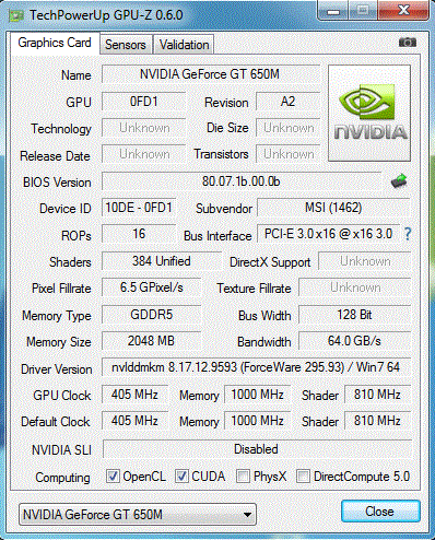 Dank des geschrumpften Fertigungsprozesses und diverser Verbesserungen (z. B. bei den Tessellatoren) genehmigen sich die Kepler-GPUs bei gleicher Power weniger Energie oder liefern bei konstantem Verbrauch eine höhere Leistung. Von der GeForce GT 650M existieren momentan zwei Varianten. Da hätten wir einmal ein DDR3-Modell mit 850 MHz Kerntakt und auf der anderen Seite ein GDDR5-Modell mit 735 MHz Kerntakt.