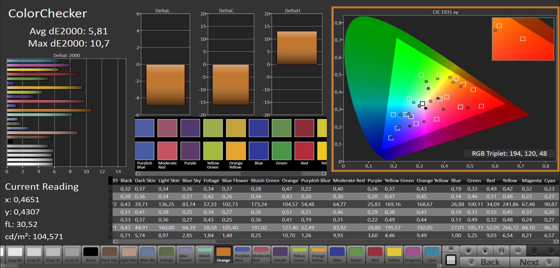 | Delta E Colorchecker * | 3.84 | 5.56 -45% | 6.32 -65% | 2.2 43% | 4.7 -22% | 6.17 -61% | 3.67 4% | 4.52 -18% |