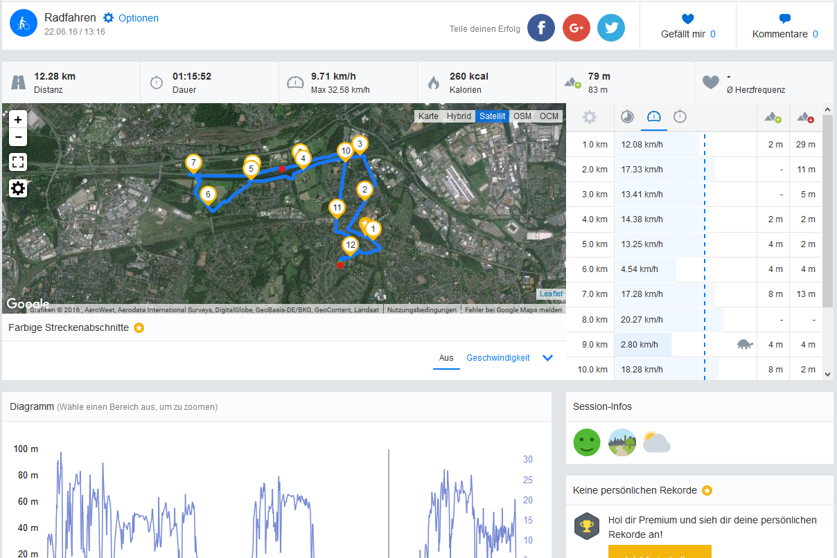 Um die Praxistauglichkeit zu überprüfen, haben wir das Smartphone zusammen mit dem Fahrrad-Computer Garmin Edge 500 auf eine Radtour mitgenommen. Die ermittelten Distanzen sind nahezu identisch. Erst beim Blick auf den detaillierten Streckenverlauf zeigt sich, dass das OnePlus 3 seinen Standort nicht ganz so oft aktualisiert wie der GPS-Profi, und es deshalb vor allem an schwierigen Stellen wie im Bereich der Brücke zu Ungenauigkeiten kommt. Für die Navigation ist die gebotene Leistung aber mehr als ausreichend.