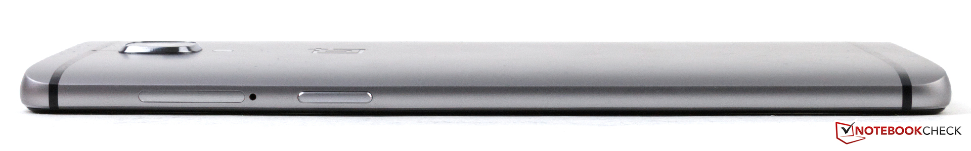 Im Vergleich zum Vorgänger wurde das Gehäuse des OnePlus 3 runderneuert. Der Hersteller setzt nun auf einen Aluminium-Unibody, welcher optisch dem HTC 10 oder Huawei Mate S ähnelt. Das Smartphone ist spürbar schlanker geworden und nun nur noch 7,35 Millimeter hoch. Wir haben je nach Position zwischen 6,8 und 7,8 Millimeter gemessen. Die Kamera ragt rund einen Millimeter hervor.