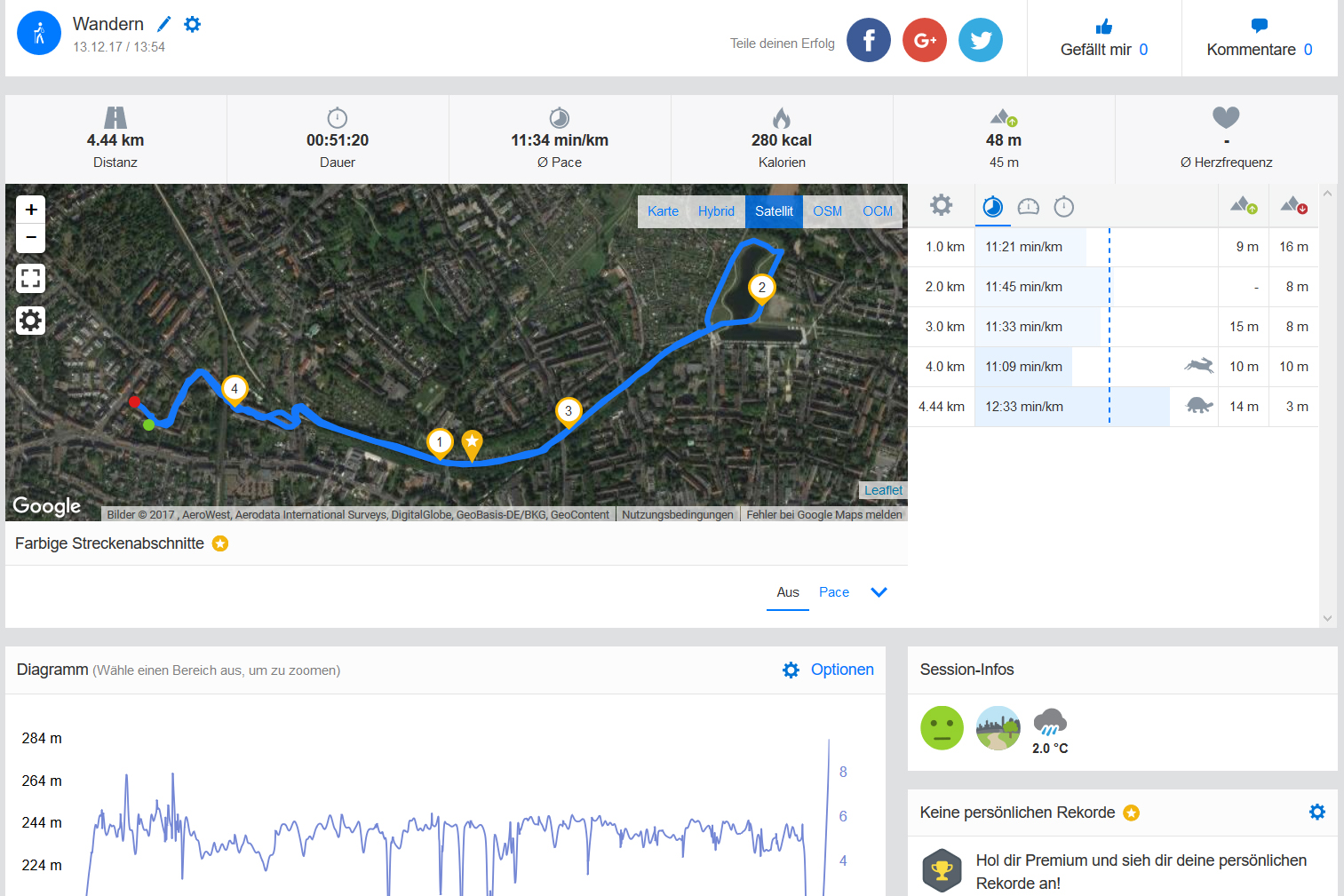 Beim Praxistest, einer Radtour mit dem OnePlus 5T und dem Profi-Navi Garmin Edge 500 im Rucksack, zeigt sichd das OnePlus 5T sehr souverän, was die Genauigkeit der Ortung angeht. Überraschenderweise zeigt hier das sonst sehr zuverlässige Garmin-Navi Aussetzer und Ungenauigkeiten. Beim OnePlus 5T gibt es davon keine Spur: Wir werden fast immer sehr exakt auf den Wegen verortet.