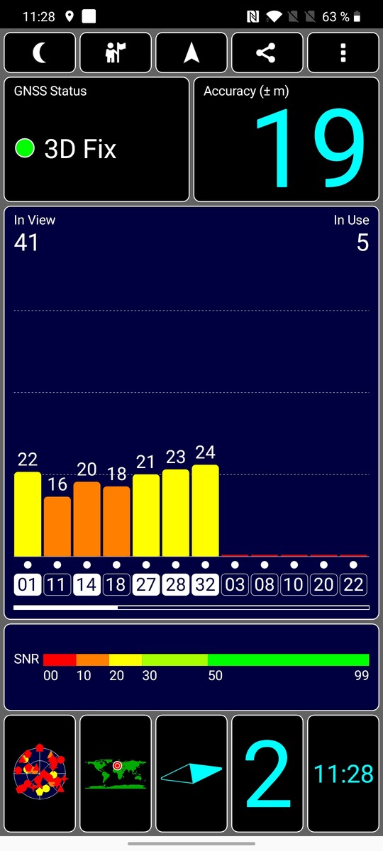 Das Smartphone erreicht in Gebäuden nahe am Fenster immerhin eine ungefähre Ortung, im Freien steigt die Genauigkeit sehr schnell auf sehr gute 4 Meter. Die Ortung bei Google Maps ist in Gebäuden bis auf wenige Meter genau, der Kompass funktioniert nach einer anfänglichen, kurzen Ungenauigkeit ebenfalls sehr exakt.