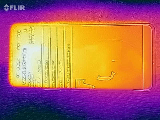 (±) Auf der Unterseite messen wir eine maximalen Wert von 43.8 °C (im Vergleich zum Durchschnitt von 34 °C).