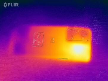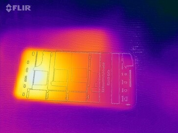 (-) Die maximale Temperatur auf der Oberseite ist 45.7 °C. Im Vergleich liegt der Klassendurchschnitt bei 35.2 °C (von 21.9 bis 247 °C für die Klasse Smartphone).