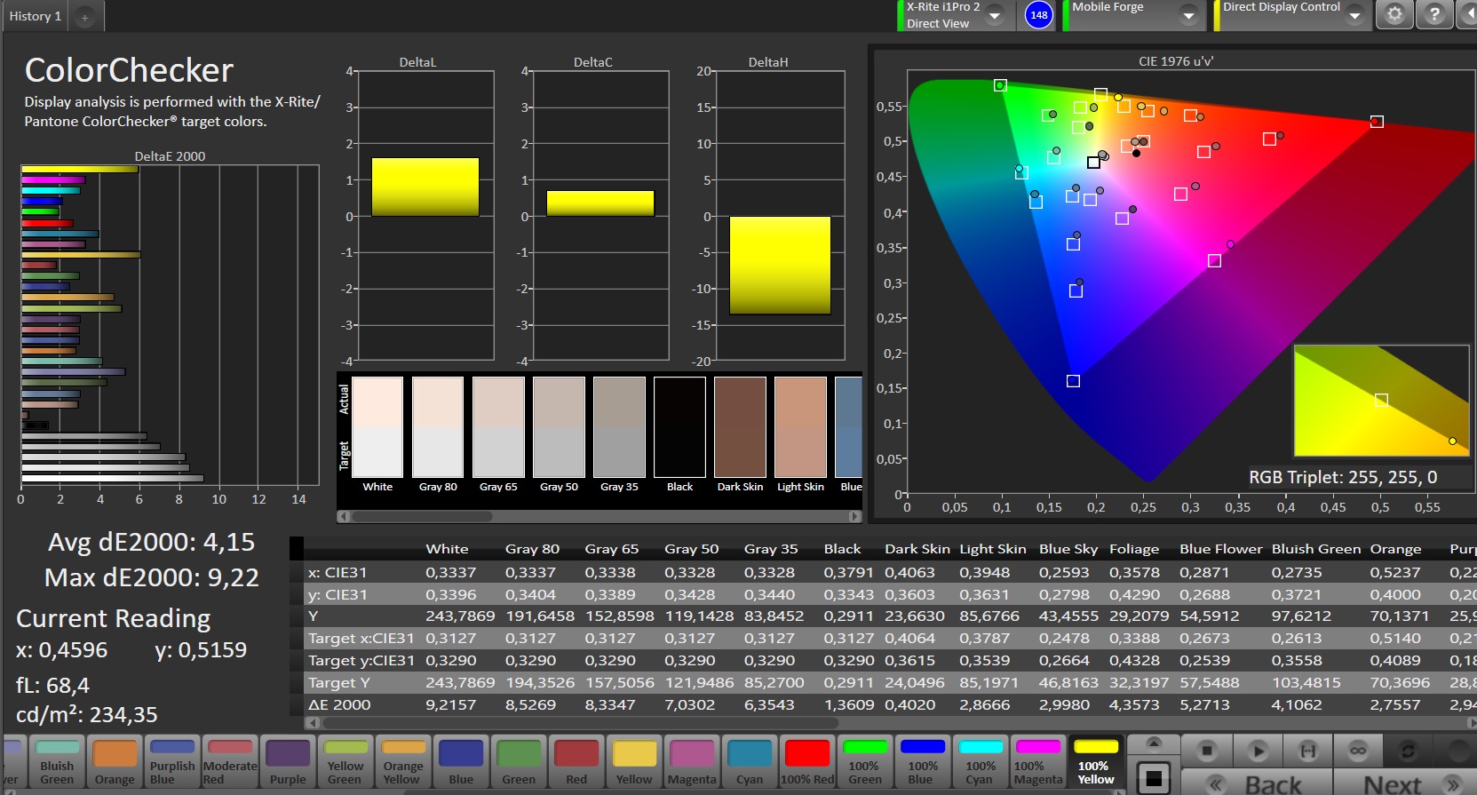 | Delta E Colorchecker * | 2.53 | 1 60% | 2.2 13% | 2.7 -7% | 4.38 -73% |