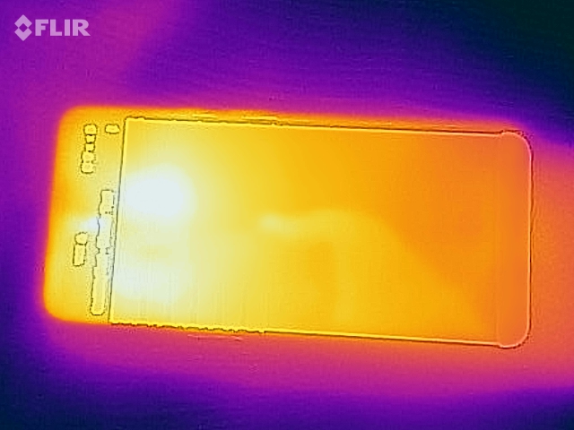 (±) Auf der Unterseite messen wir eine maximalen Wert von 43 °C (im Vergleich zum Durchschnitt von 34 °C).
