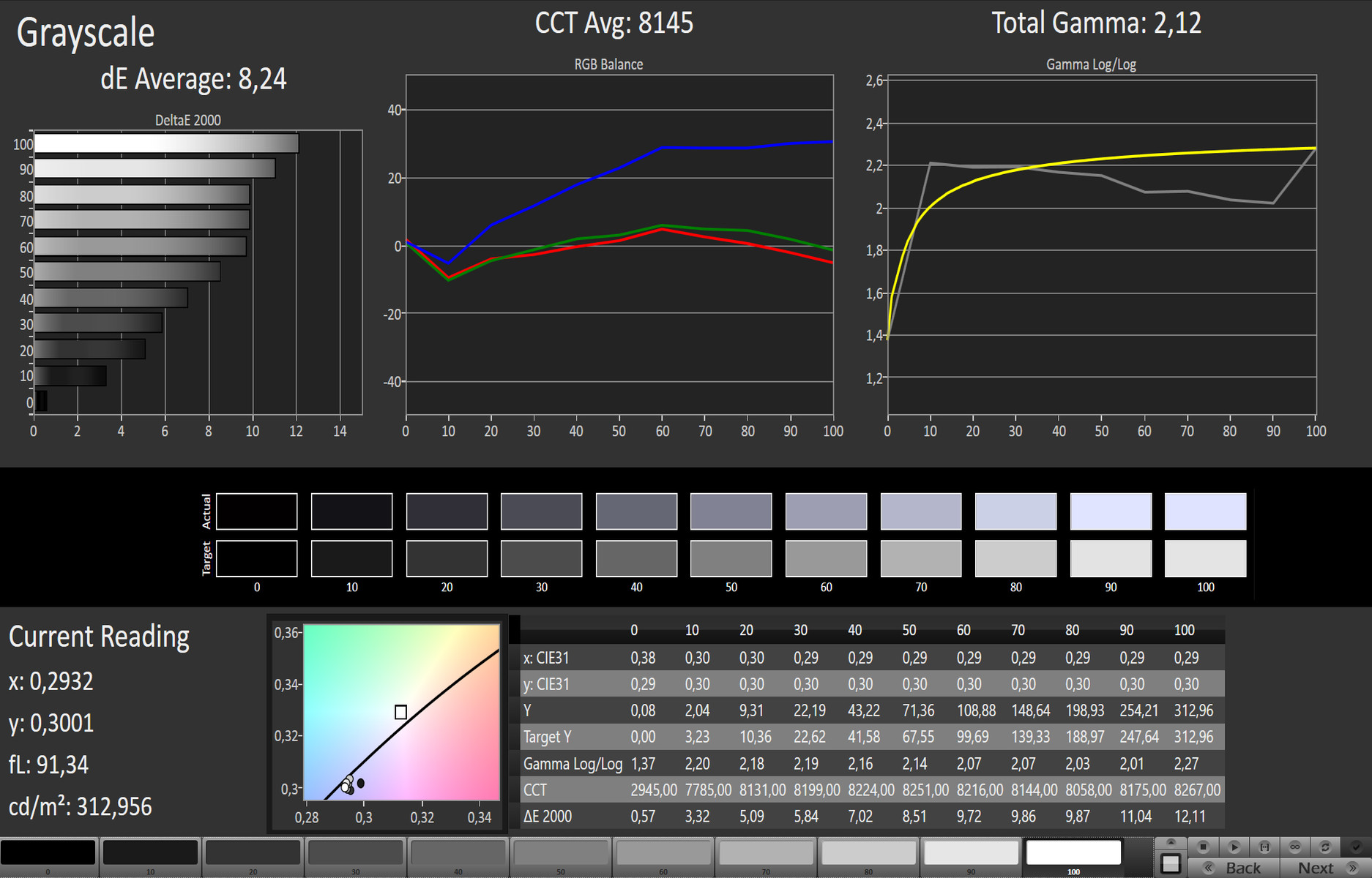 ΔE Greyscale Calman: 8.24 | ∀{0.09-98 Ø5}