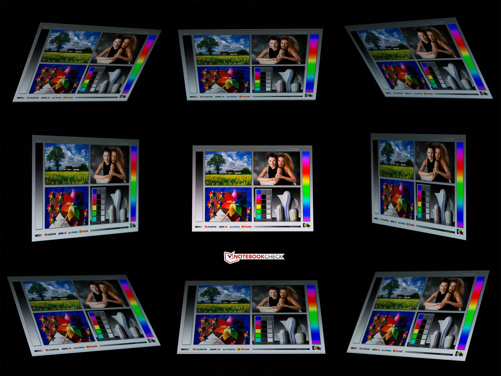 Die Helligkeit vermessen wir bei einem reinweißen Hintergrund mit maximaler Leuchtkraft und deaktiviertem Umgebungslichtsensor. Dabei ergibt sich eine sehr gleichmäßige Ausleuchtung bei einer Maximalleuchtkraft von 330 cd/m². Bei eine APL von 50 steigt diese sogar auf bis zu 430 cd/m². Eine weitere Helligkeitserhöhung bei aktiviertem Sensor konnten wir nicht feststellen.