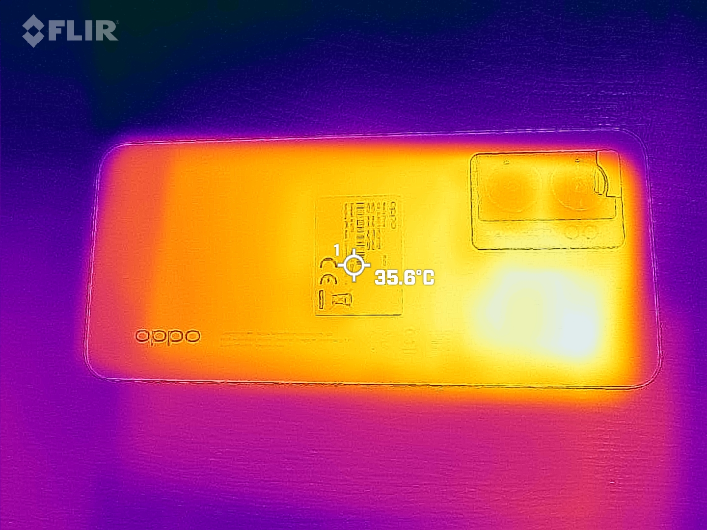 Die maximale Erwärmung ist mit 43 °C unter längerer Last durchaus spürbar, aber noch nicht unangenehm. Zudem drosselt das SoC auch bei dauerhafter Belastung nicht.