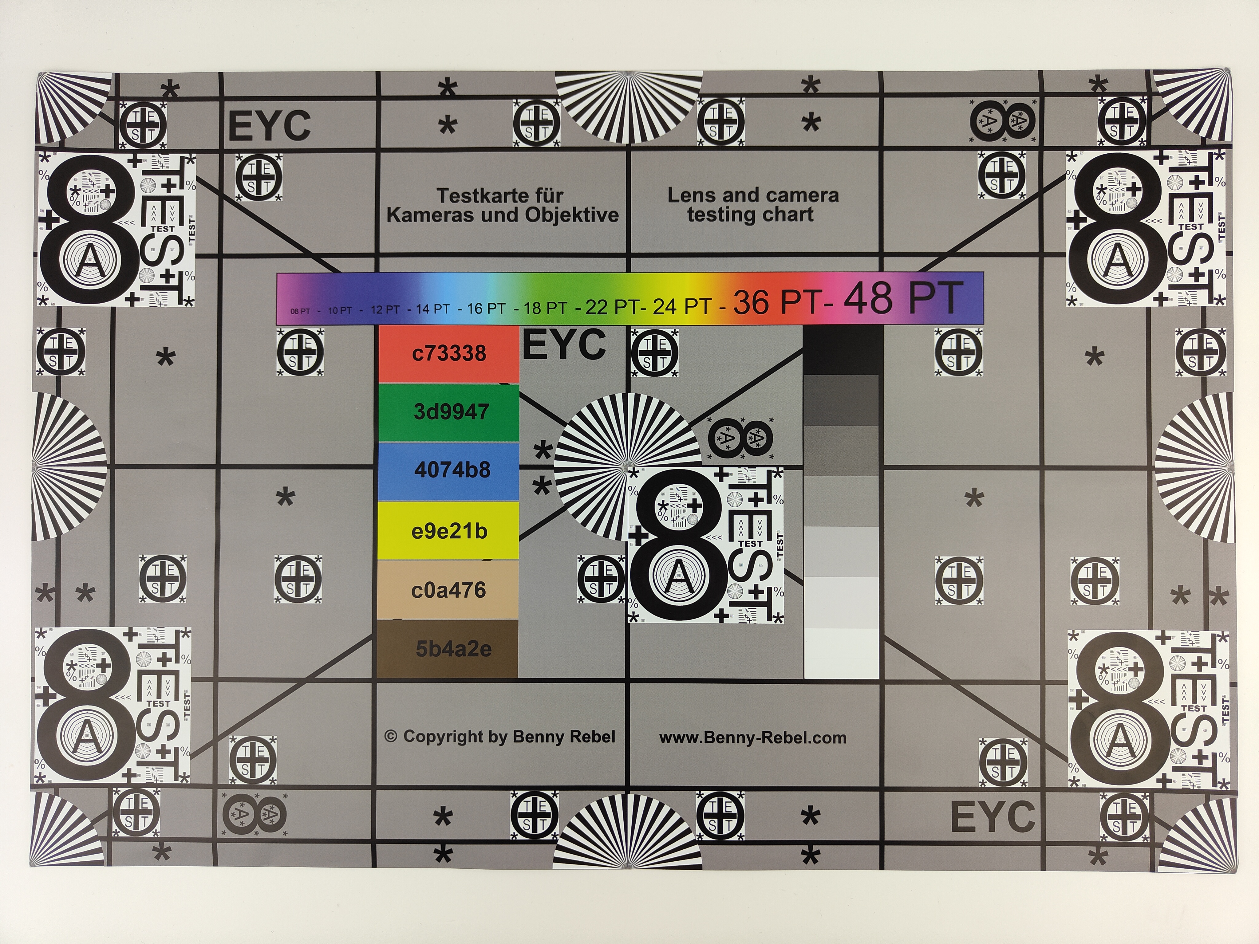 | Colorchecker dE 2000 max. * | 1.8 | 3.1 -72% | 1.4 22% | 2.51 -39% | 8.7 -383% |