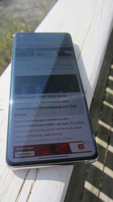 Der kapazitive Touchscreen des Find X5 arbeitet mit einer Abtastrate von bis zu 240 Hz und reagiert präzise auf Eingaben, egal an welcher Stelle des Bildschirms sie erfolgen. Ab Werk ist das Smartphone mit einer Displayschutzfolie ausgestattet, die an den beiden kurzen Seiten nahezu bündig mit dem Touchscreen abschließt, die Wölbung an den beiden abgerundeten langen Seiten aber nur bis etwa zur Hälfte der Kurve bedeckt. Hält man das Oppo in den Händen, kann man die Schutzfolie deshalb recht leicht ertasten und der Übergang zum Touchscreen fühlt sich recht hart an.