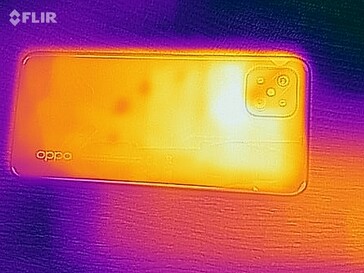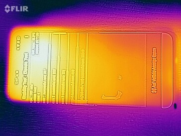 (-) Die maximale Temperatur auf der Oberseite ist 46.9 °C. Im Vergleich liegt der Klassendurchschnitt bei 35.2 °C (von 21.9 bis 247 °C für die Klasse Smartphone).