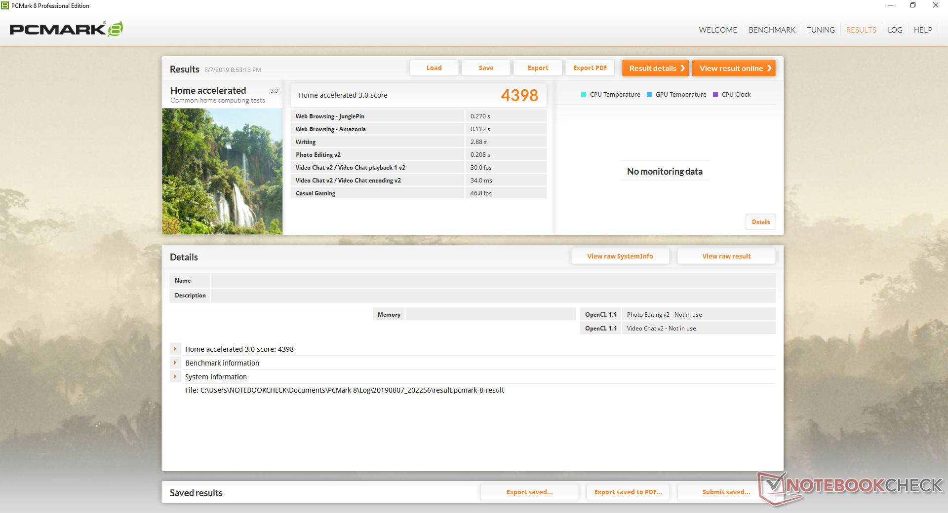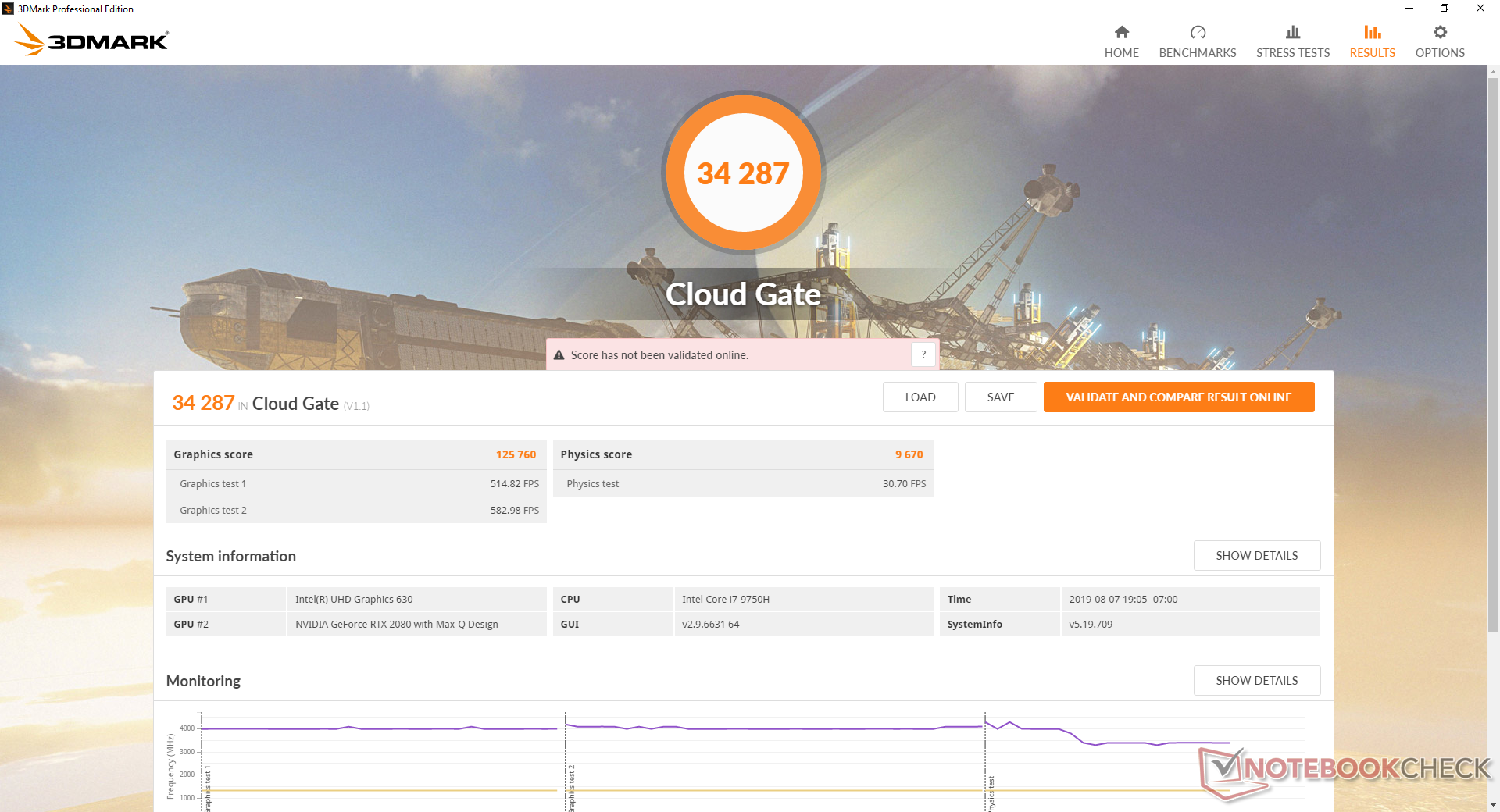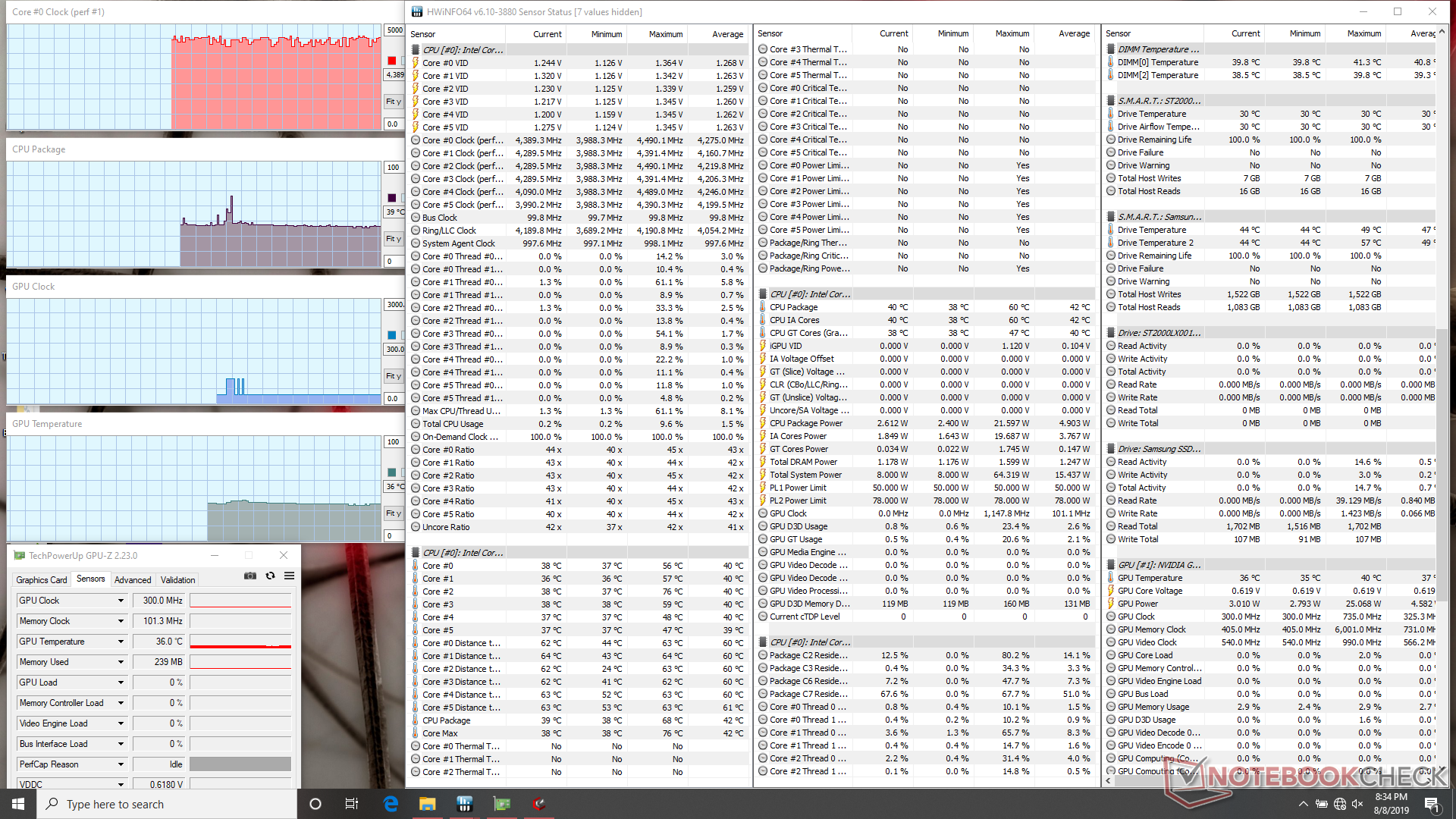 Das Spielen von The Witcher 3 repräsentiert praktische Gaming-Lasten jedoch besser. Hier stabilisieren sich CPU und GPU bei 83 °C bzw. 70 °C, wohingegen die Temperaturen des Blade 15, das mit der gleichen RTX 2080 Max-Q Grafikkarte ausgestattet ist, bei 79 °C bzw. 69 °C liegen. Auch unter hoher Last muss das System weder CPU noch GPU drosseln.