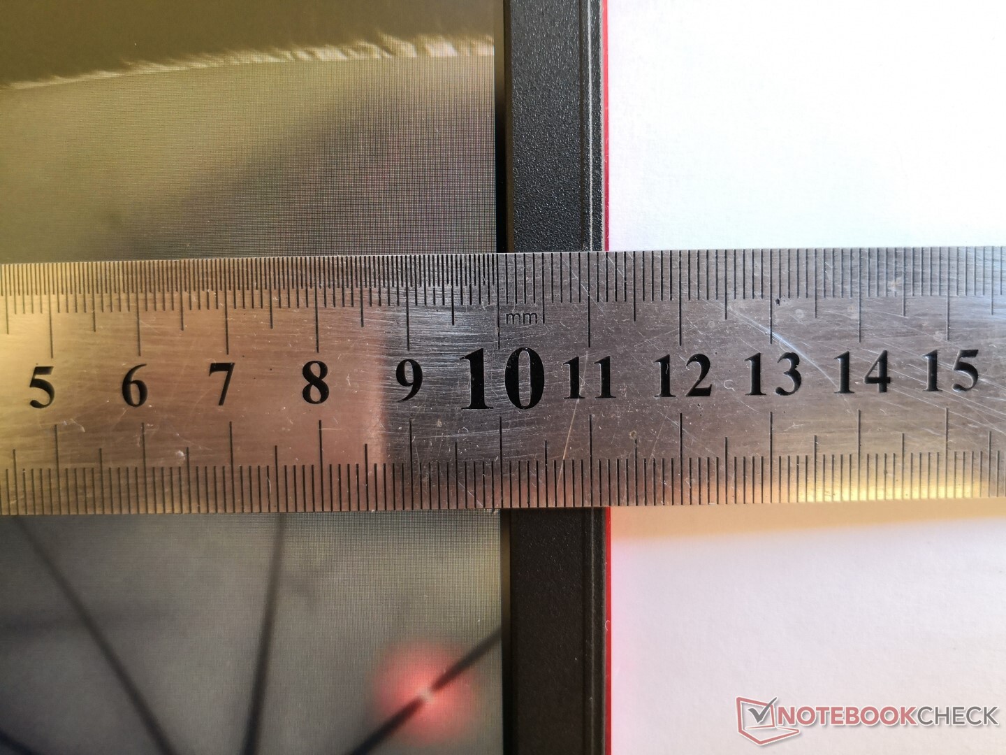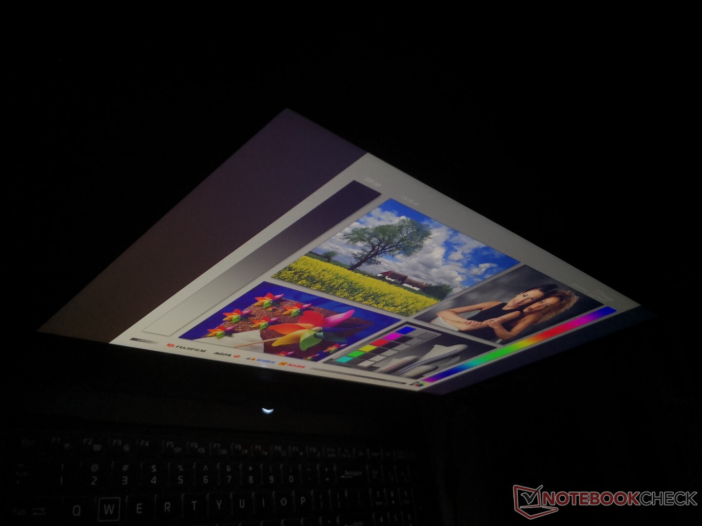 Wie für viele matte Displays üblich ist es außerdem leicht körnig. Daher haben verspiegelte Displays auf Kosten von erhöhten blendenden Reflexionen einen erwähnenswerten Vorteil in Sachen Schärfe. Unglücklicherweise leidet unser Testgerät wie unten gezeigt unter moderat ausgeprägten, ungleichmäßigen Lichthöfen an den Rändern und in den Ecken, die sich während des Bootvorgangs und bei der Wiedergabe von Videos mit schwarzen Balken bemerkbar machen.