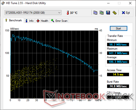 (±) Beim längeren Spielen von The Witcher 3 erhitzt sich das Gerät durchschnittlich auf 37.1 °C. Der Durchschnitt der Klasse ist derzeit 33.9 °C.