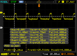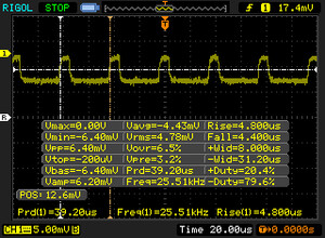 | PWM Frequency (Hz) | 25510 ? | 23810 ? | 23580 ? | 25510 ? | 990 ? | |