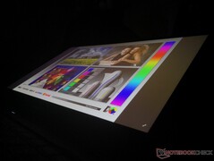 Da die Hintergrundbeleuchtung hier dunkler ist als bei den meisten Ultrabooks, kann die Lesbarkeit im Freien maximal als durchschnittlich bezeichnet werden. Farben und Schrift verwaschen bei hellem Umgebungslicht schnell. Die Blickwinkel sind groß, die kleinen Veränderungen beim Kontrast und den Farben treten IPS-typisch nur bei extrem steilen Winkeln auf.