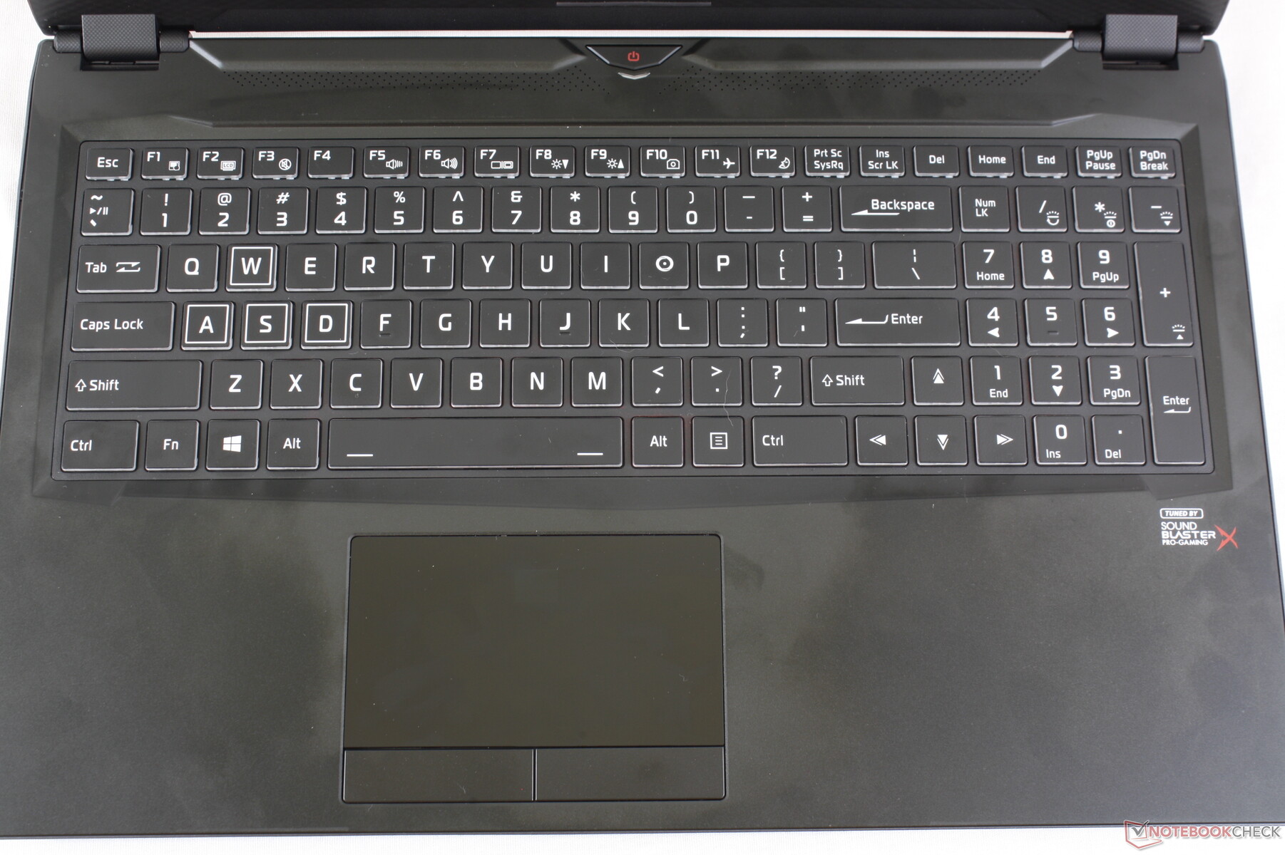 In Bezug auf Textur und Gleiteigenschaften kommt das durchschnittlich große Touchpad (~10,8 x 6 cm) dem des Eurocom Nightsky RX17 sehr nahe. Im Gegensatz zu den meisten anderen Laptops ist die Glasoberfläche hier, ähnlich wie bei einem Smartphone-Touchscreen, vollständig glatt. Dadurch besitzt es bei unterschiedlich schnellen Bewegungen ungleichmäßige Gleiteigenschaften und einen höheren Widerstand als gewöhnlich. An die untypische Oberfläche muss man sich erst einmal gewöhnen...