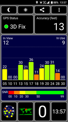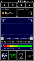 Die Empfangsleistung des eingebauten GPS-Moduls war schlecht. Auf der gut 11 Kilometer langen Teststrecke kam es zu deutlichen Differenzen (>6 Kilometer) zwischen dem Smartphone und dem Profi-GPS-Referenzgerät "Garmin Edge 500". Die sehr große Abweichung ist darin begründet, dass ein Teil der Strecke nicht aufgezeichnet wurde. Auch könnte innerhalb der Wohnung mittels der App "GPS-Test" keine Verbindung zu Satelliten aufgebaut werden. Die Ortung im Freien gelingt hingegen recht gut und zügig. Die Genauigkeit liegt bei mittelmäßigen 13 Fuß, etwa 4 Metern.